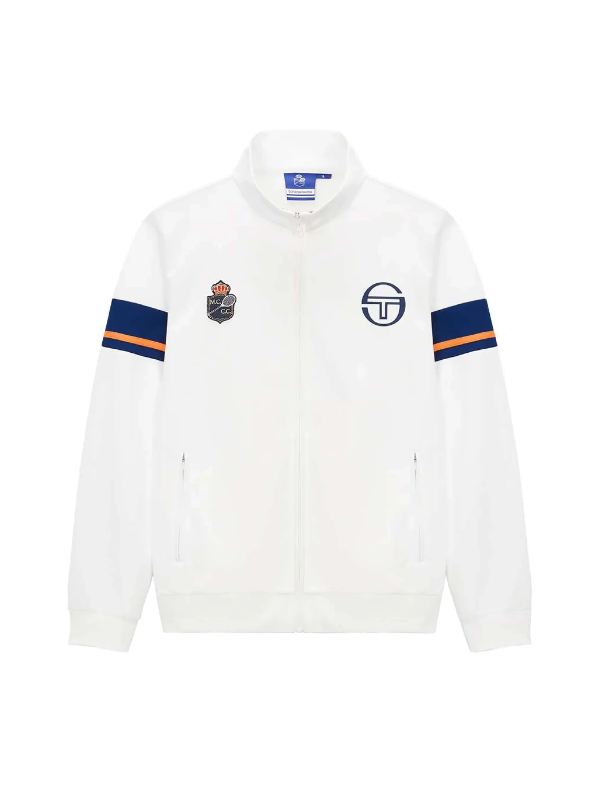 The Ace Staff Track Jacket is part of our dedicated collection designed for staff at the annual Rolex Monte-Carlo Masters Tournament. Featuring contrast panels with pop-color taping stripes at the sleeves, this premium full-zip features Monte Carlo Country Club’s prestigious crown logo and an ‘ST’ monogram at the chest, while collaborative art at the back completes the look.