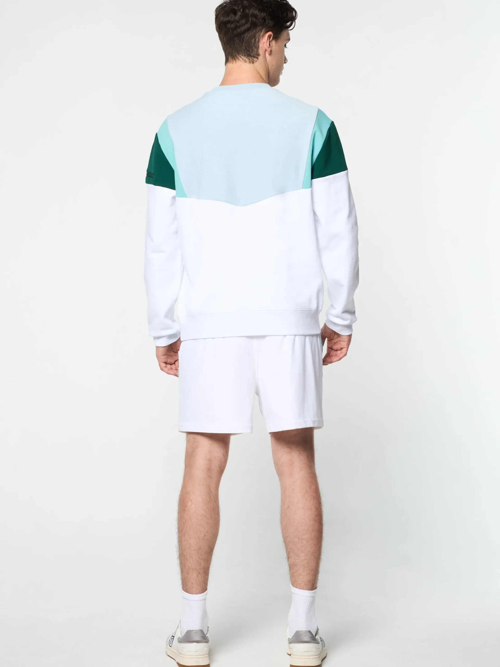 The Angolo Crewneck Sweatshirt is made of super-soft French terry cotton for maximum comfort through cooler weather. Crafted in a color-blocked silhouette with chevron seam detailing, this elevated crewneck is complete with a convenient zippered pocket at the left sleeve to secure your essentials.