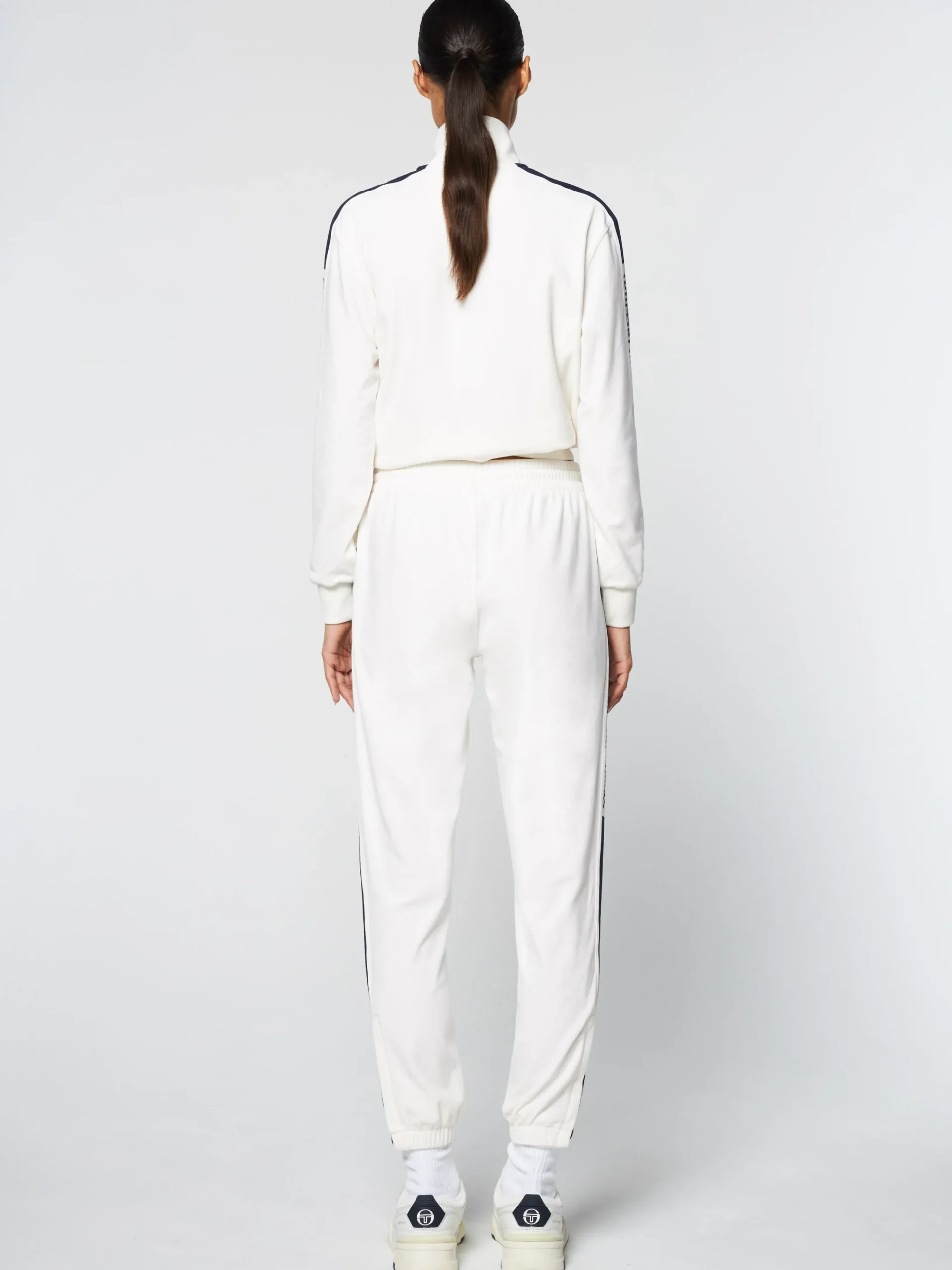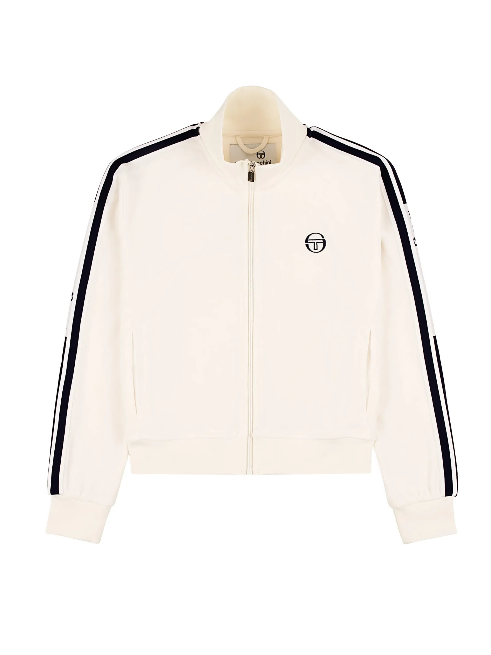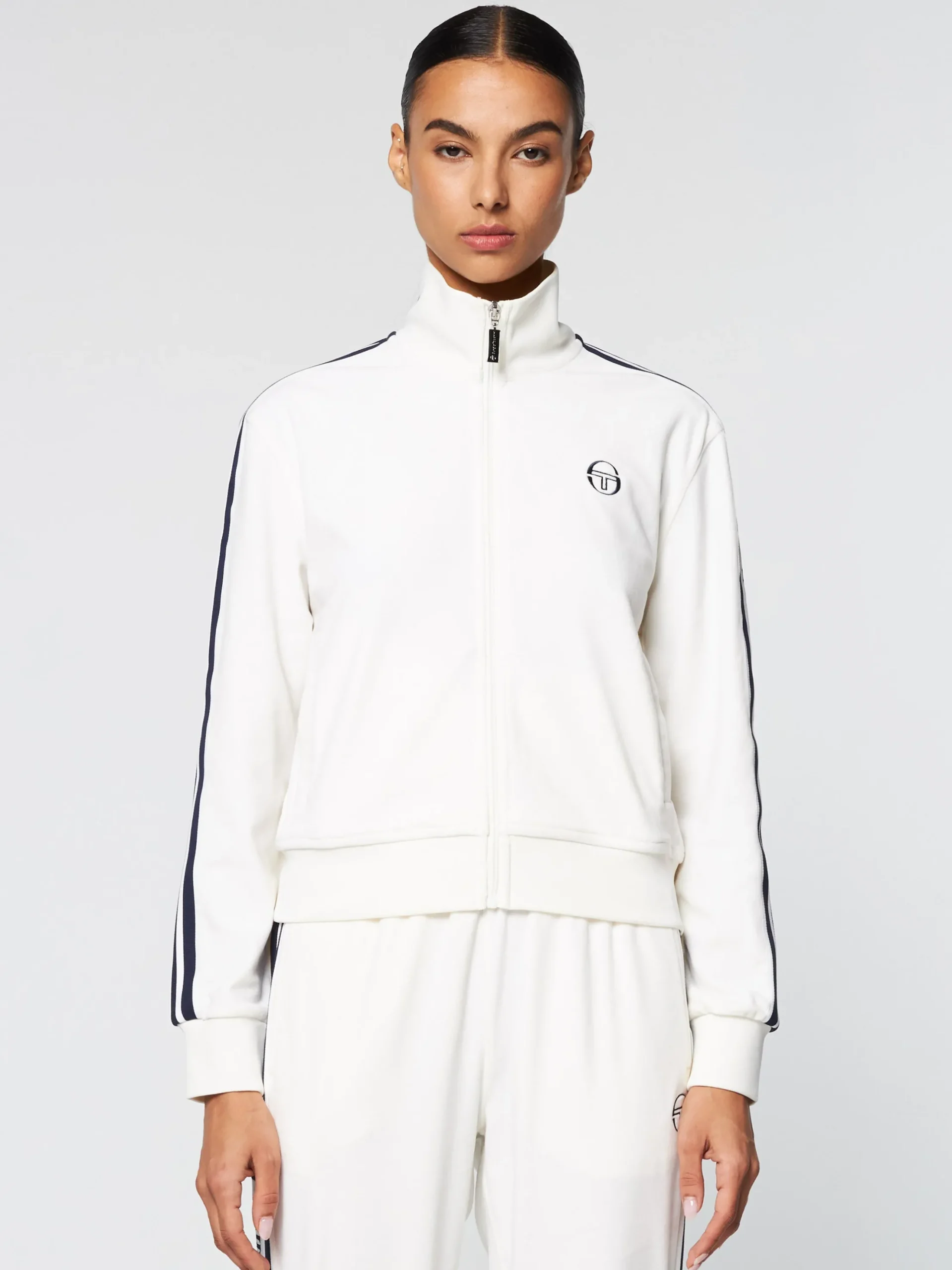 Crafted from plush velour for a soft and luxurious feel, the Atri Velour Track Jacket features Sergio Tacchini-branded stripe taping down the sleeves and our iconic ‘ST’ monogram embroidered at the chest. Cut cropped for easy styling, this elevated for-her fit is finished with spacious pockets and rib-knit trims.