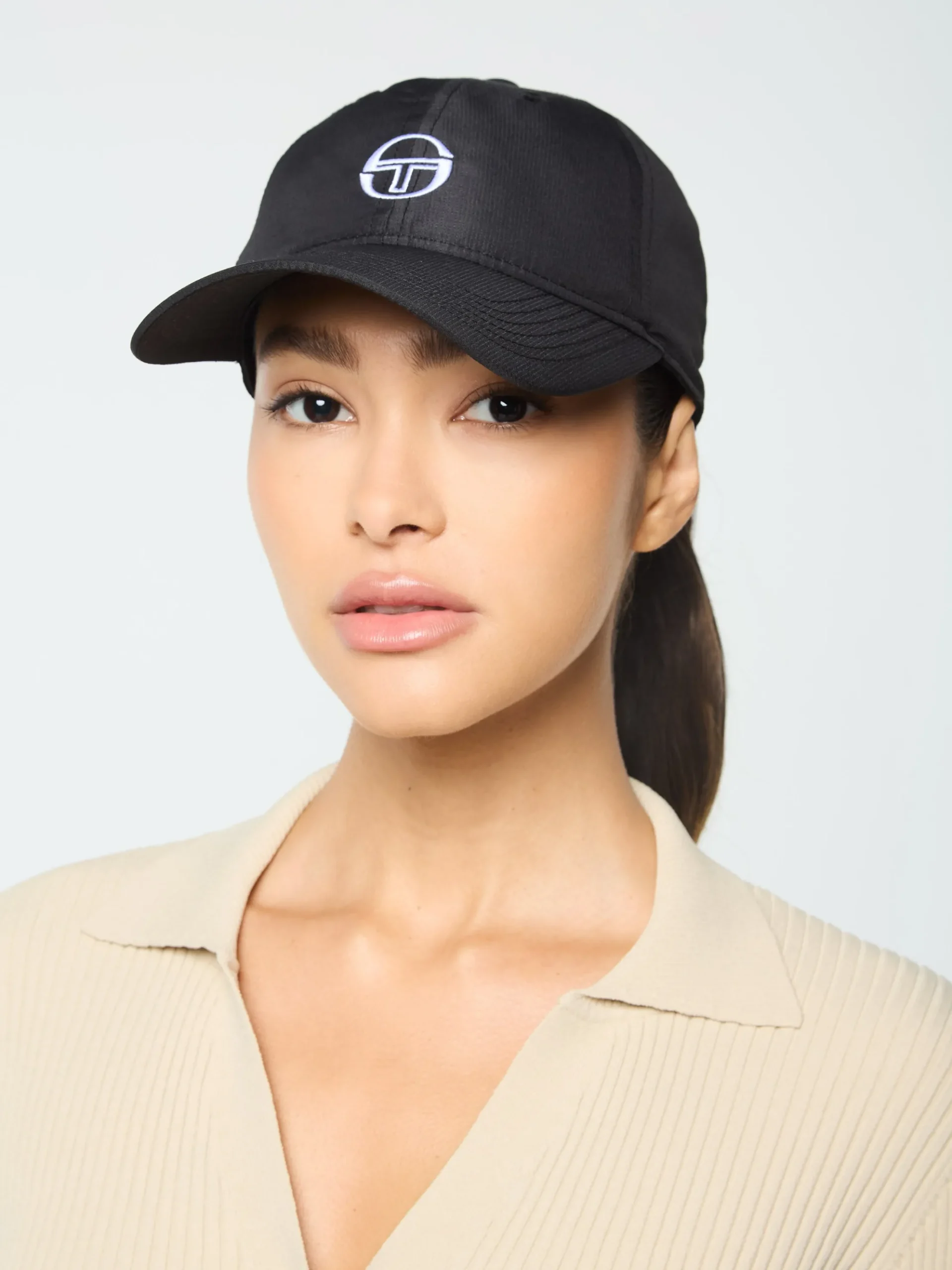 Keep your cool from the court to the street with our low-profile Court Hat. Made of lightweight and durable ripstop, this classic 6-panel cap features embroidered Sergio Tacchini logos, a curved visor, and an adjustable velcro strap for the perfect fit.