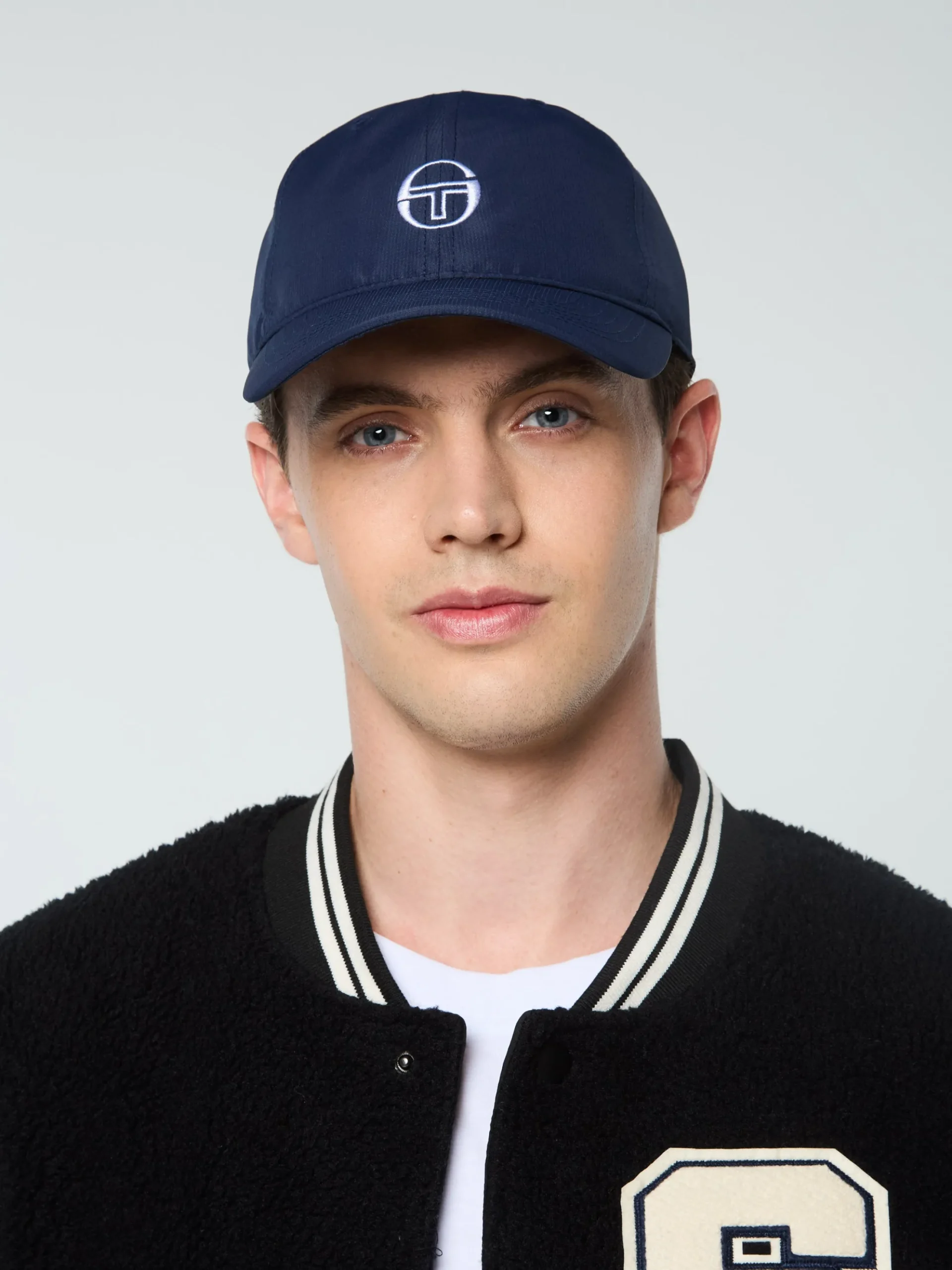 Keep your cool from the court to the street with our low-profile Court Hat. Made of lightweight and durable ripstop, this classic 6-panel cap features embroidered Sergio Tacchini logos, a curved visor, and an adjustable velcro strap for the perfect fit.