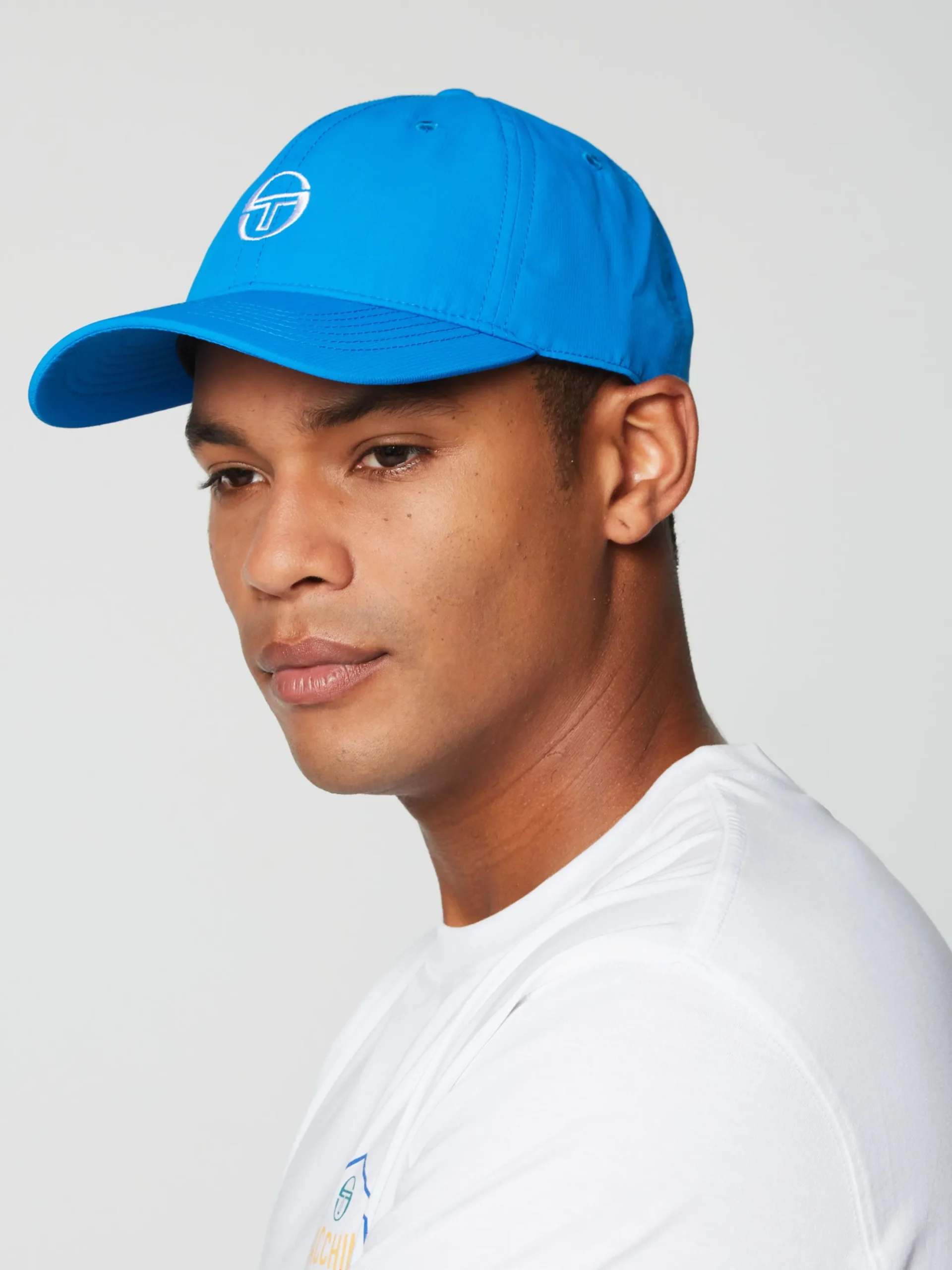 Keep your cool from the court to the street with our low-profile Court Hat. Made of lightweight and durable ripstop, this classic 6-panel cap features embroidered Sergio Tacchini logos, a curved visor, and an adjustable velcro strap for the perfect fit.