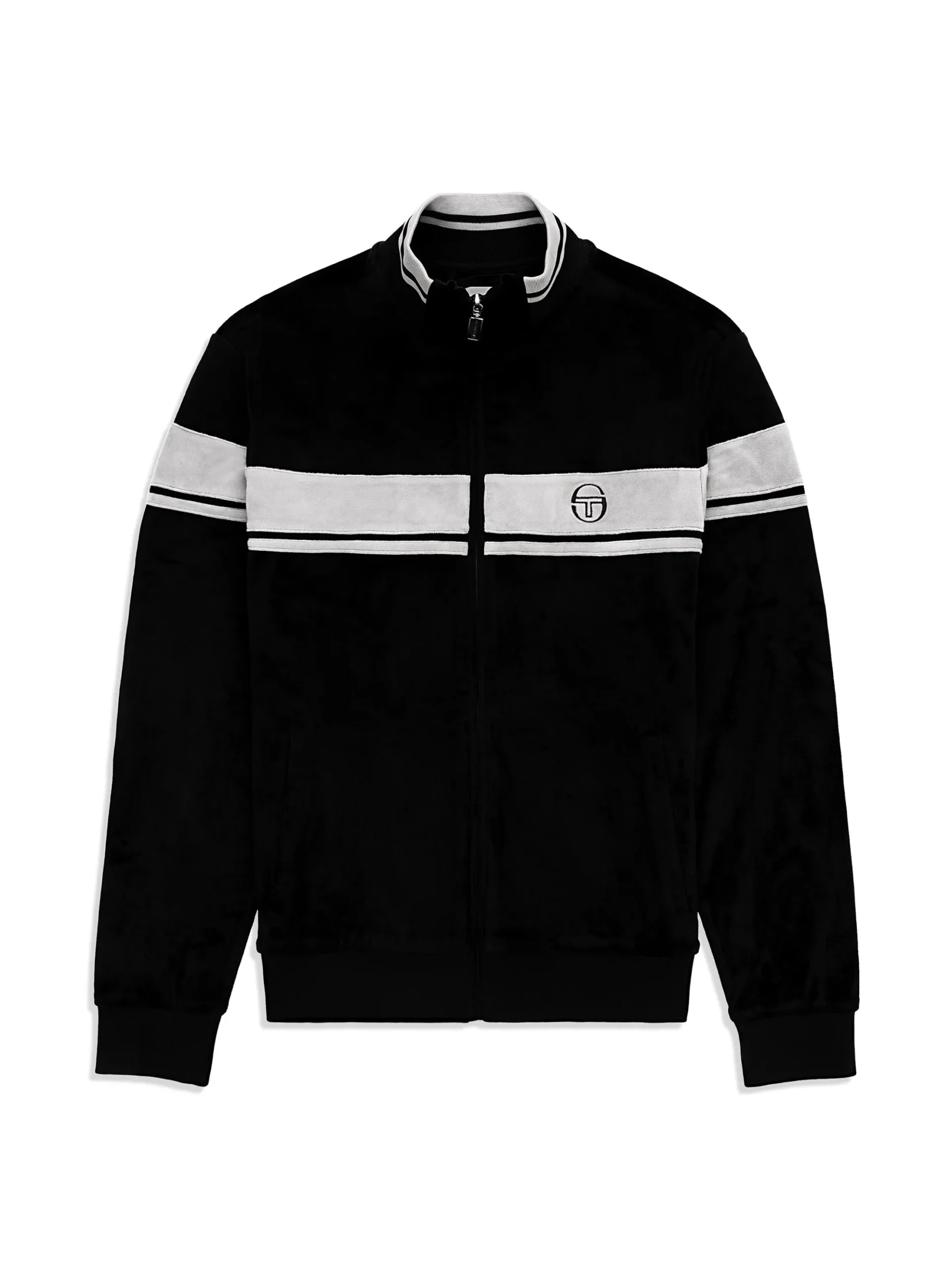 A premium take on a Tacchini classic, the Damarindo Velour Track Jacket is crafted from plush velour for a luxurious feel. Featuring our renowned double stripe at the chest, sleeves, and collar, this elevated full-zip track jacket is complete with spacious handwarmer pockets, rib-knit trims, and our iconic ‘ST’ monogram logo embroidered at the left chest.