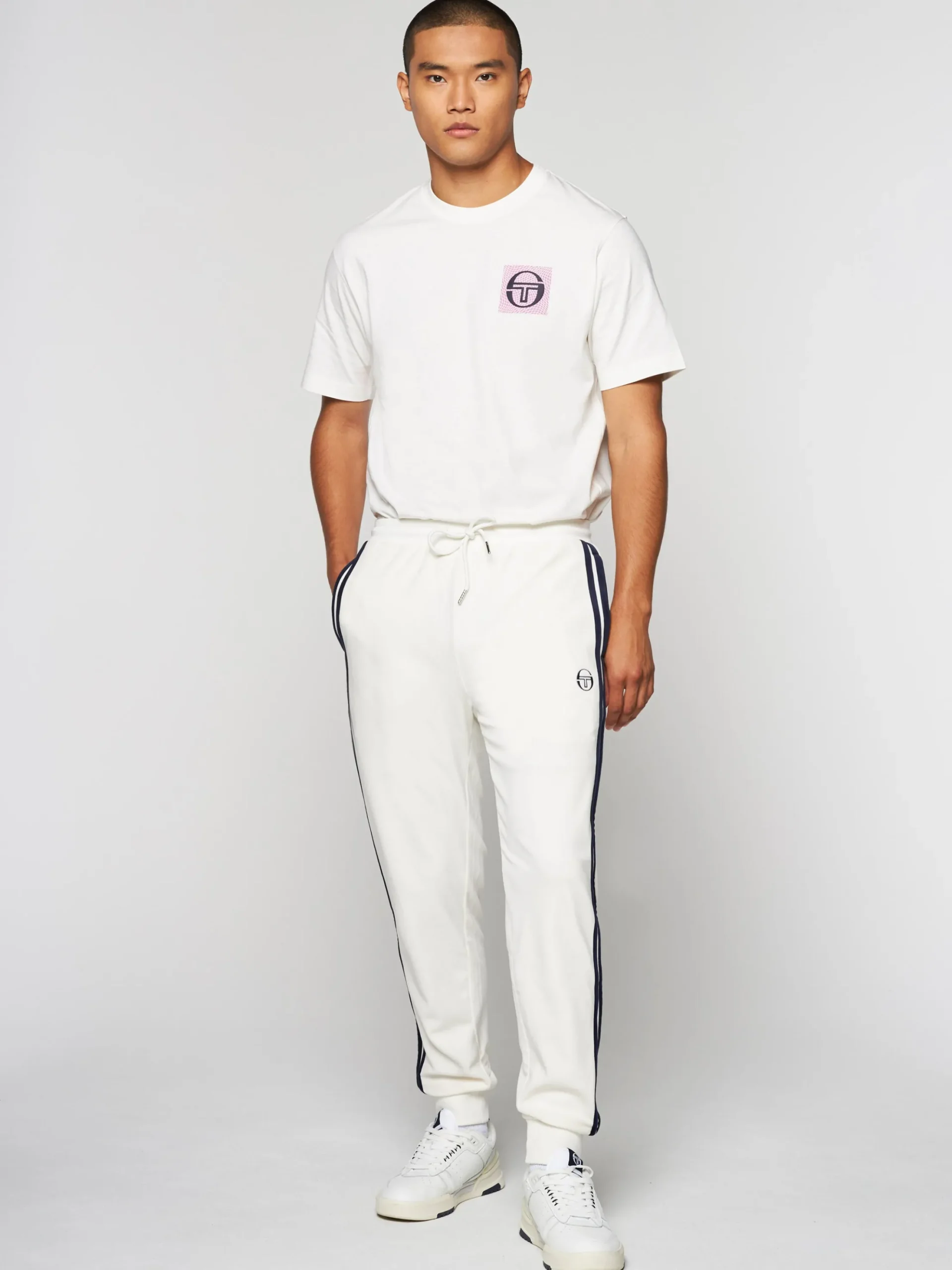 A premium take on a Tacchini classic, the Damarindo Velour Track Pant is crafted from plush velour for a luxurious feel. Topped with a comfortable rib-knit waistband, these elevated track pants are complete with double stripe taping down the legs, spacious pockets, and our iconic ‘ST’ monogram logo embroidered at the left thigh.