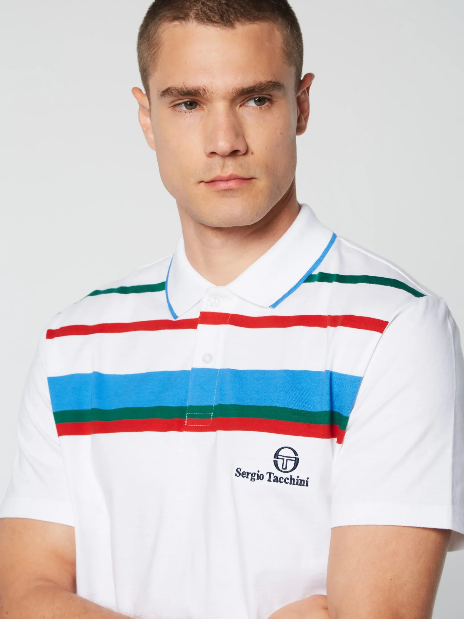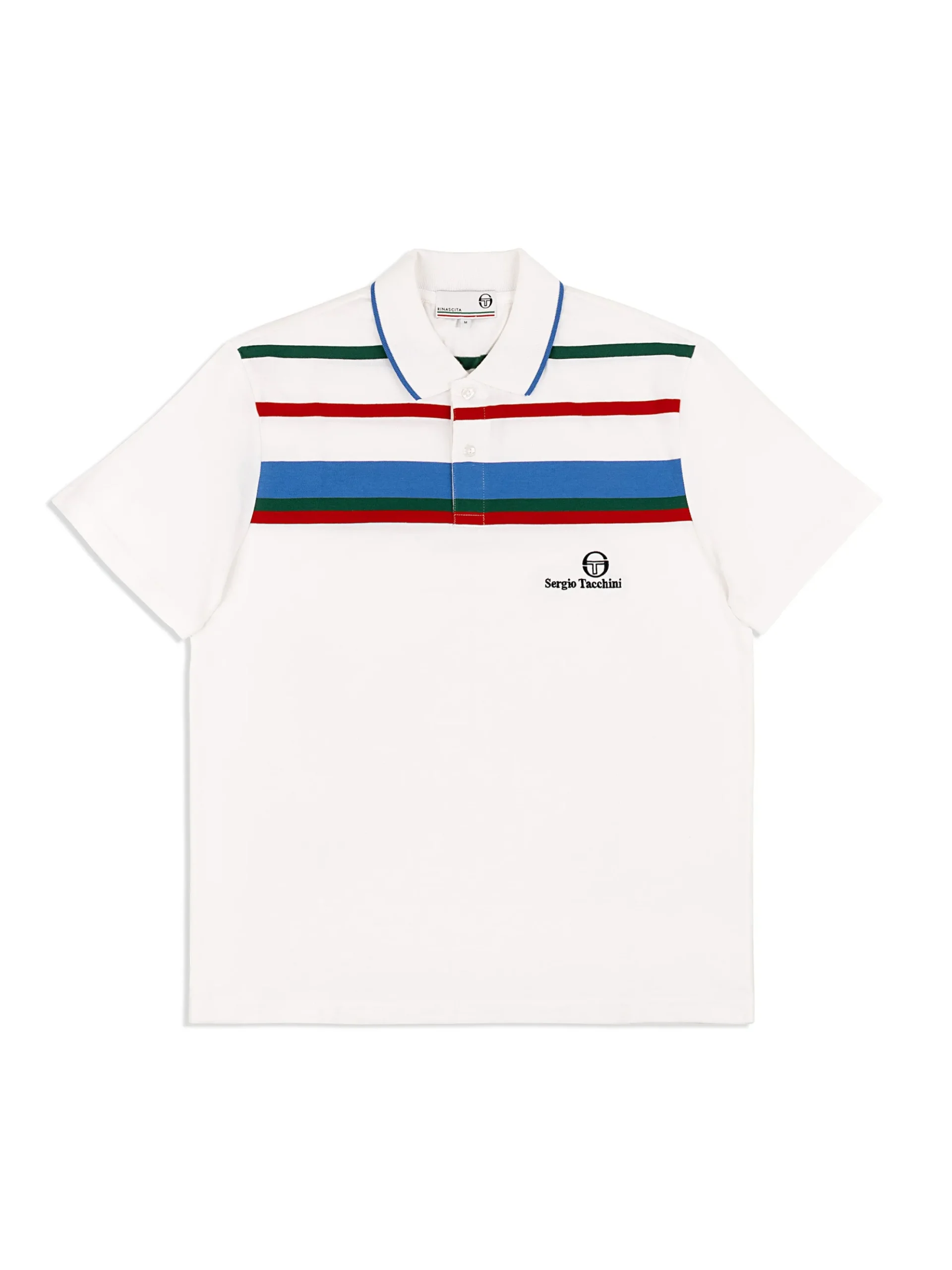 A clean take on classic sportswear, the Denver Polo is made of pure cotton with a tipped rib-knit collar for style and comfort on and off the court. Featuring multicolored striping at the upper, this premium polo is finished with an embroidered Sergio Tacchini logo at the left chest.