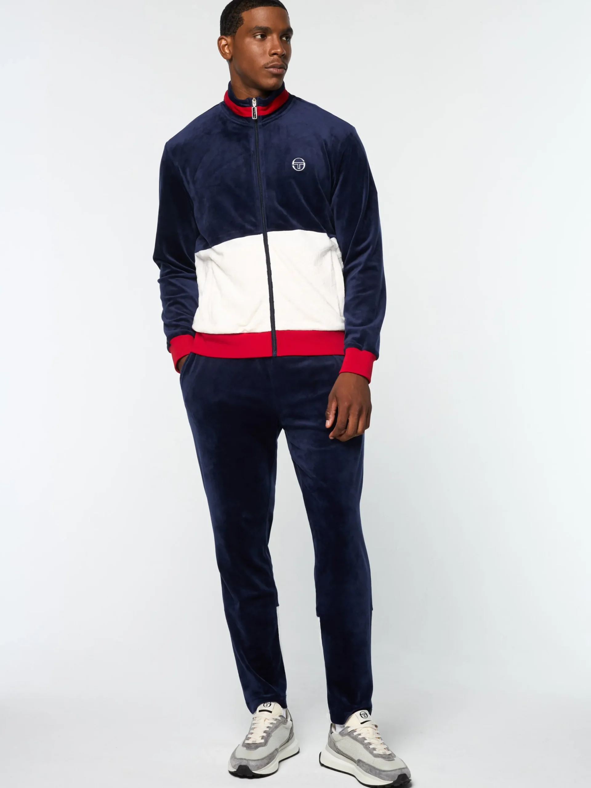 Sergio Tacchini Foggia Velour Debossed Track Jacket- MARITIME BLUE Discount
