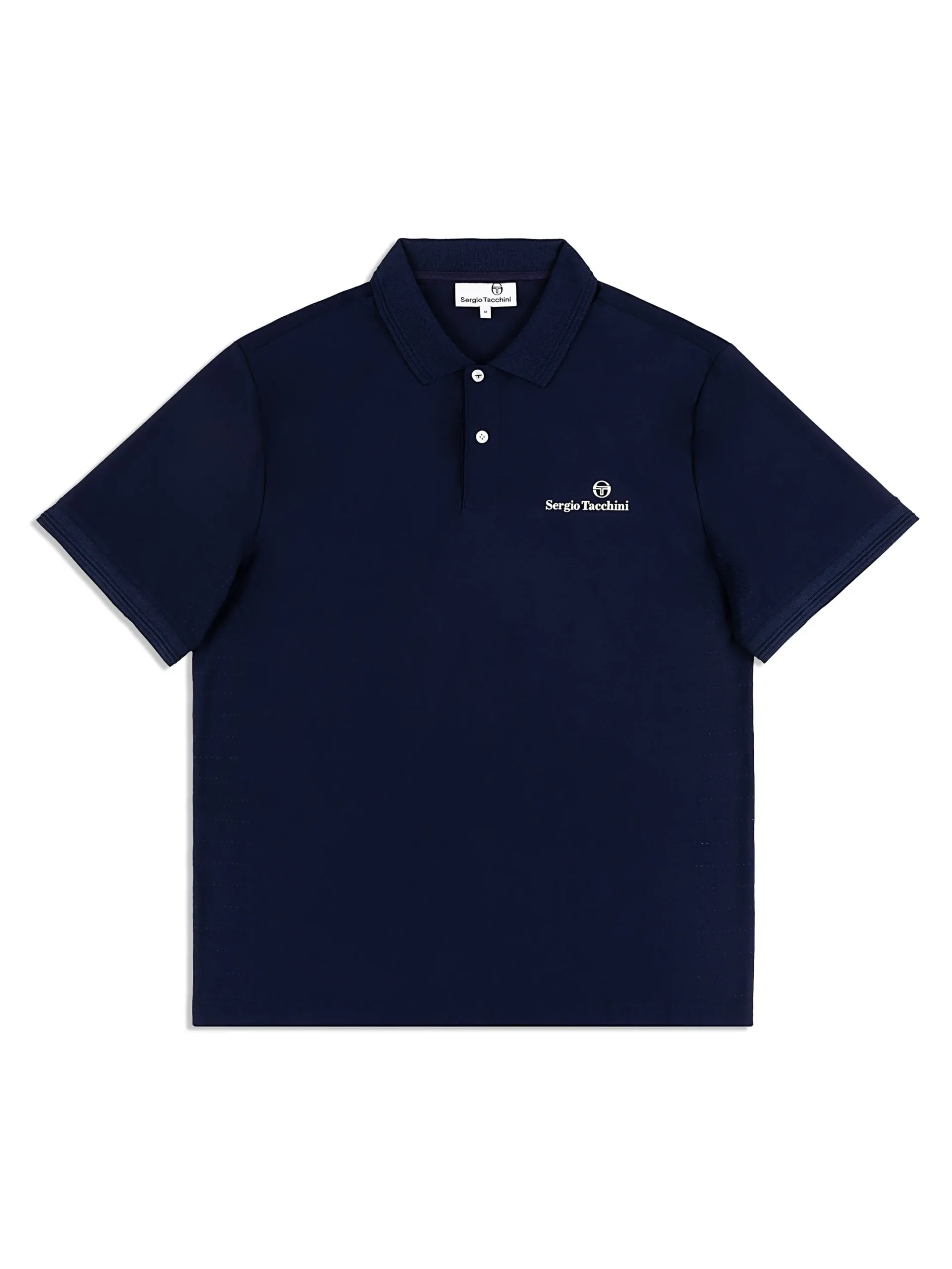Elevate your game with the Foro Polo, made of performance piqué with a subtle stretch and perforated vent panels to keep you cool and moving freely through any workout. Perfect for on and off-court wear, this lightweight and breathable polo is complete with a Sergio Tacchini logo at the left chest.