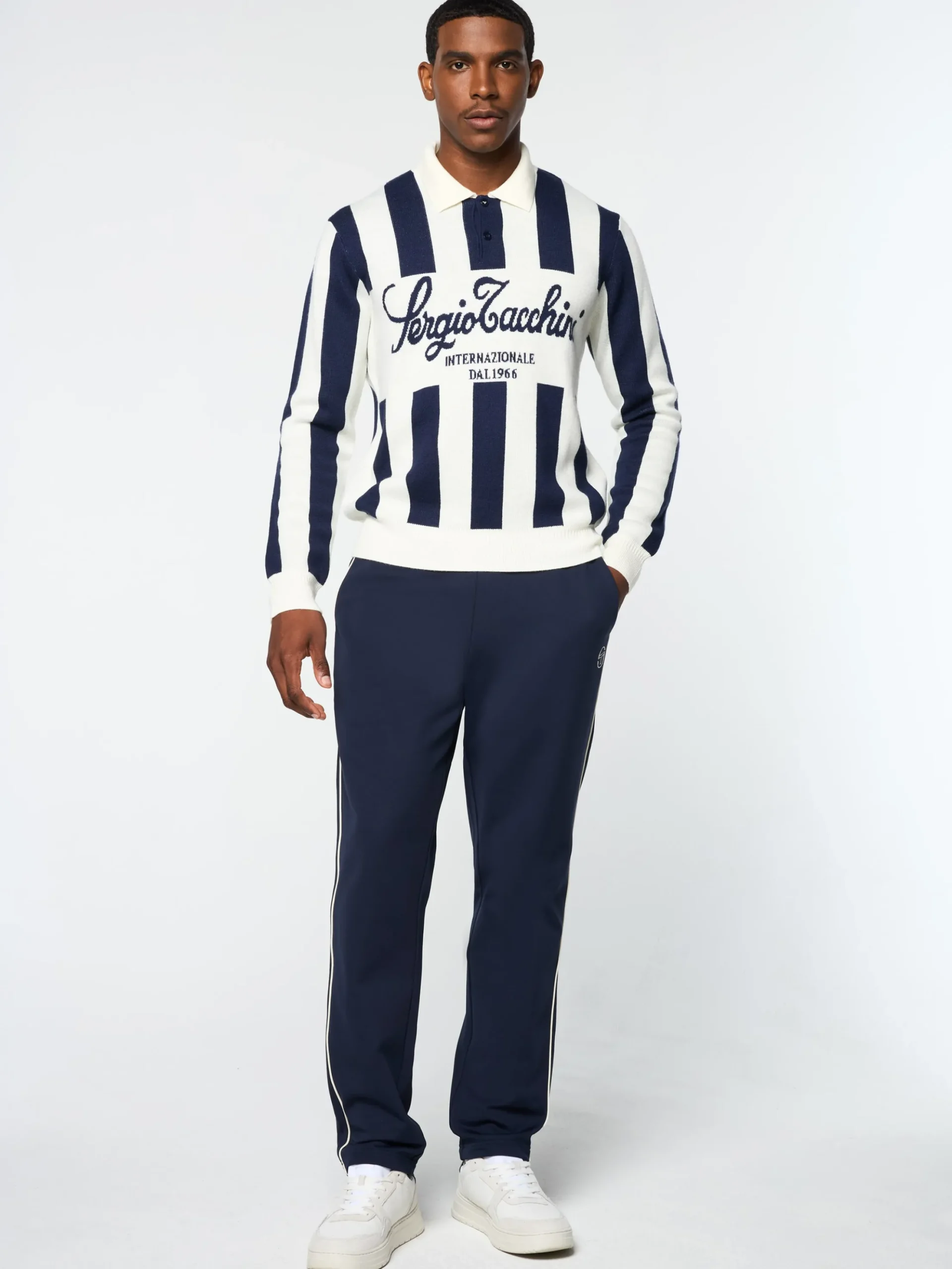- Jacquard-knit Sergio Tacchini script logo at chest and all-over vertical striping