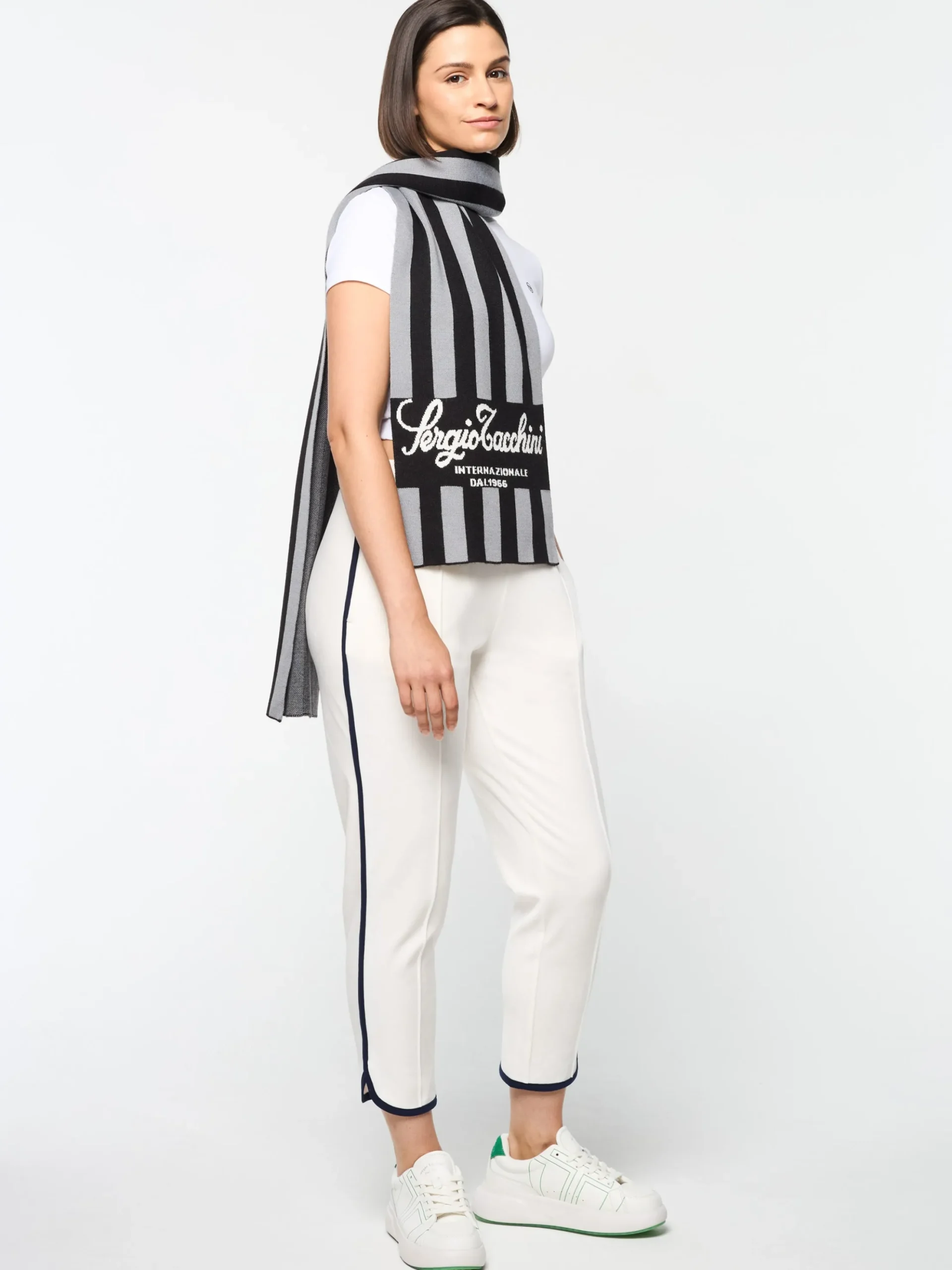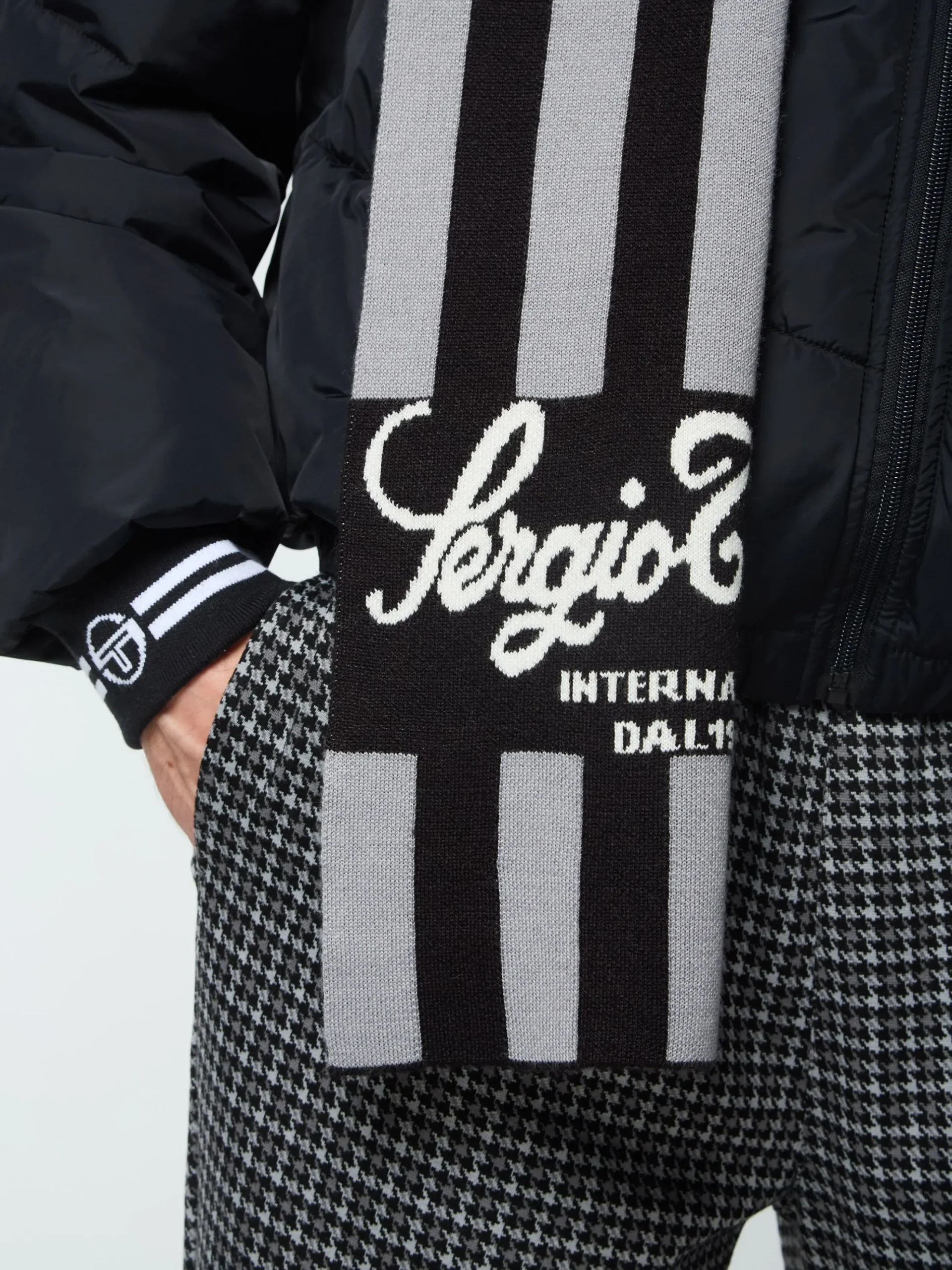 Perfect for cooler-weather looks, our Gioco Jacquard Scarf is crafted from premium birds-eye back jacquard fabric that’s warm, breathable, and exceptionally soft to the touch. Featuring an all-over stripe repeat and elevated Sergio Tacchini script logo, this versatile scarf is a go-to staple for when the temps drop.