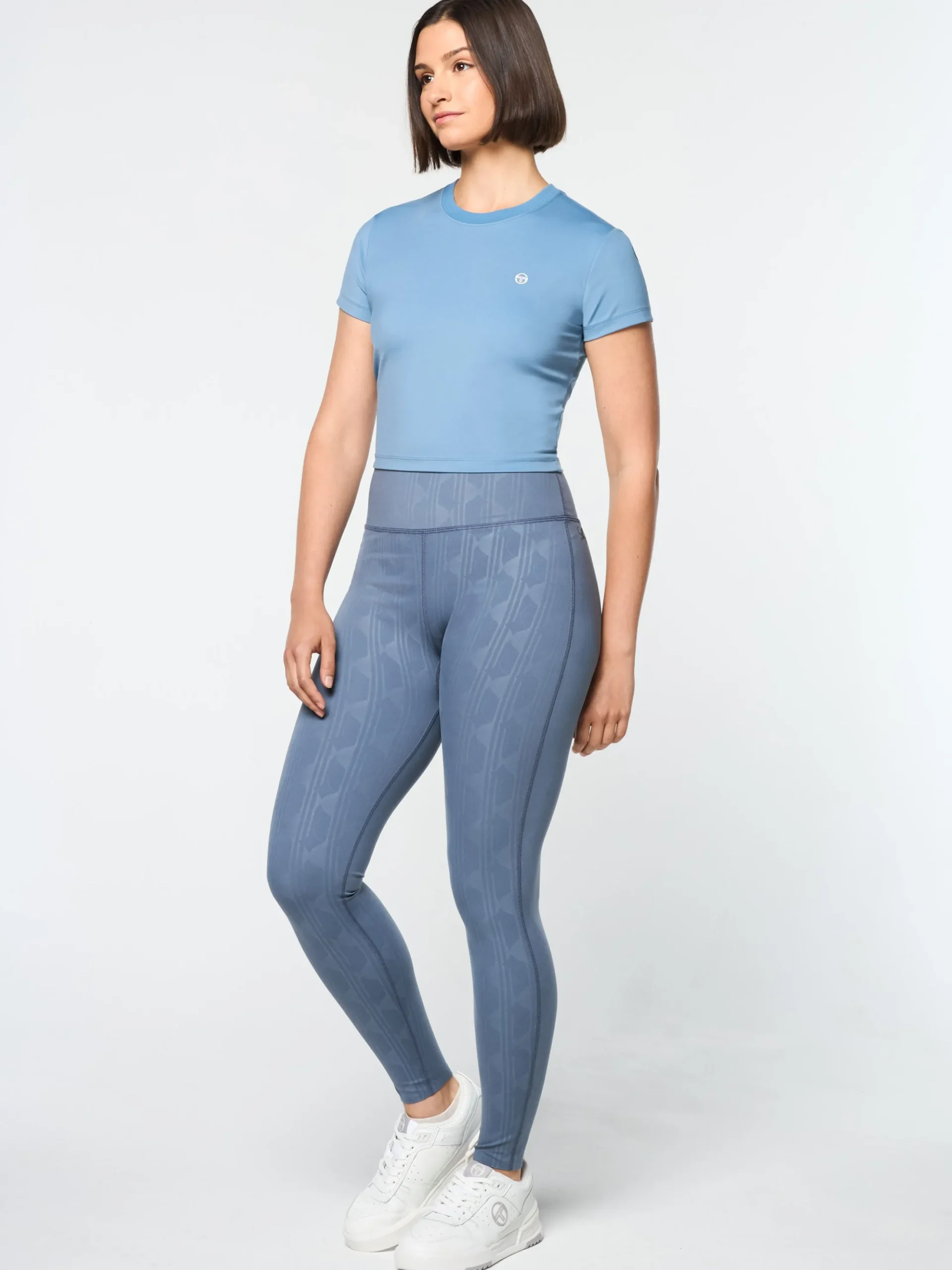 Crafted from buttery-soft, 4-way stretch fabric with moisture wicking properties, our Mirano Fitted Crop Top is the perfect fit for workouts and casual everyday wear. Featuring our iconic ‘ST’ monogram logo at the chest, this form-fit tee is cut cropped for easy styling over your favorite exercise shorts and leggings.