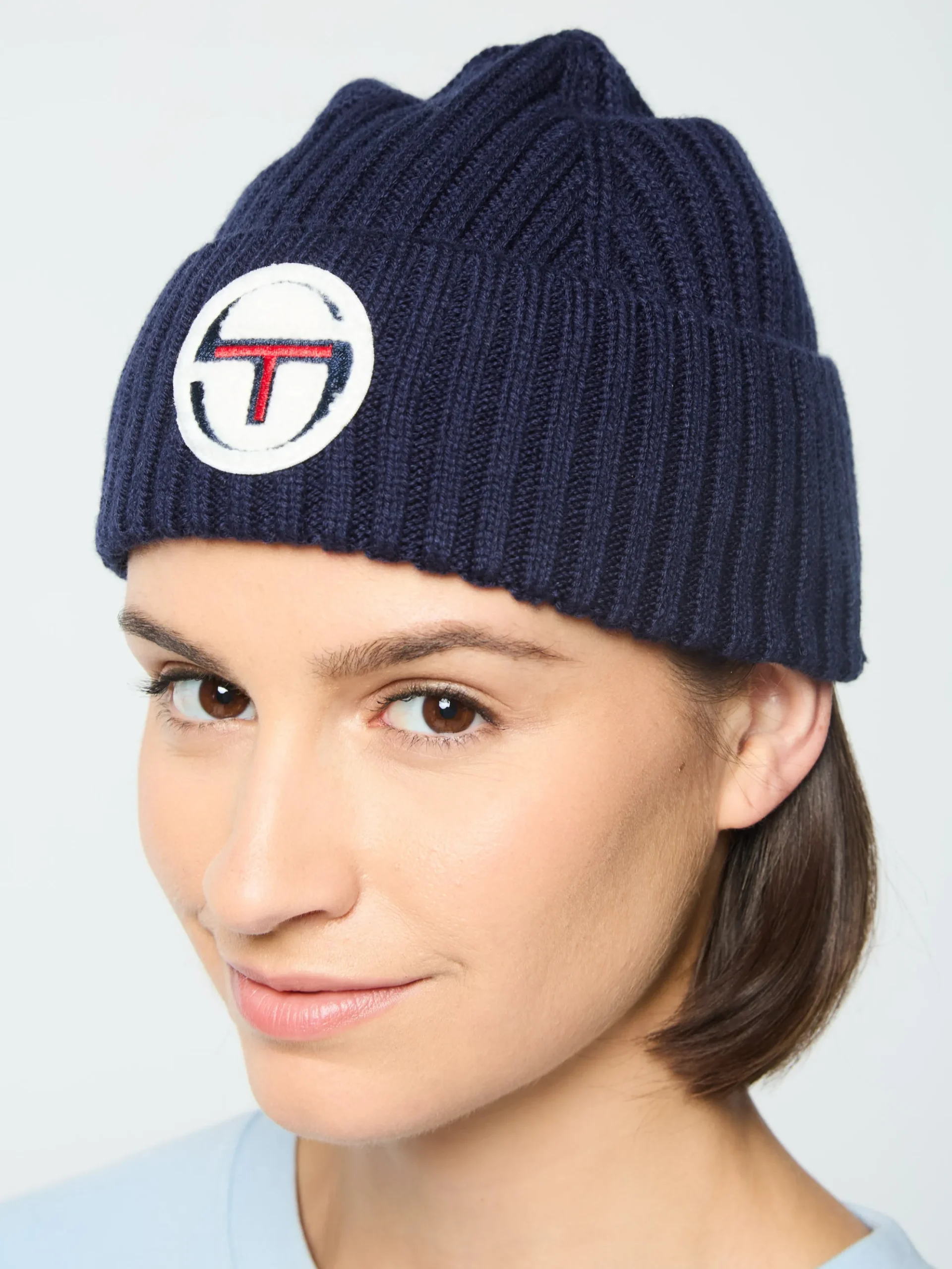 - Rib-knit fold-over beanie