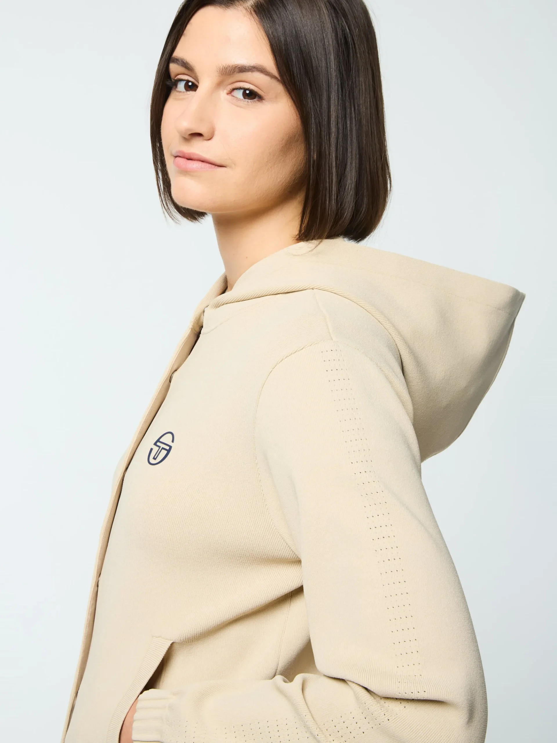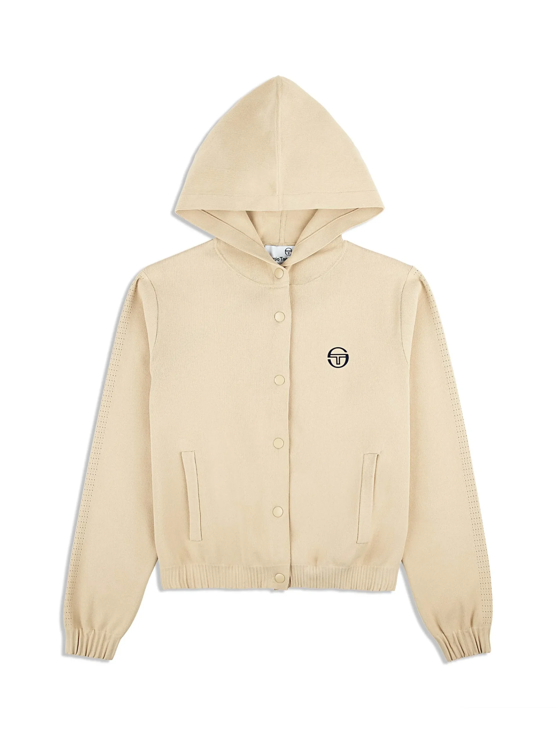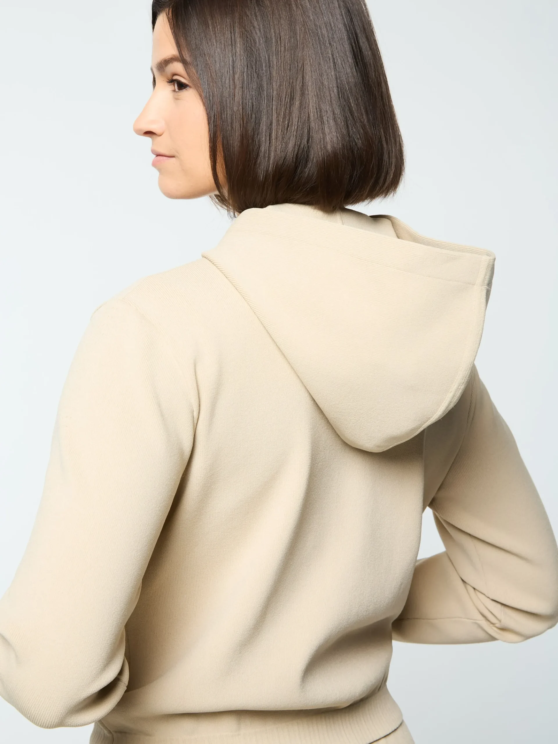 Your new favorite hoodie, the Rosolina is crafted from extremely soft rib-knit fabric with elegant pointelle detailing down the sleeves for an elevated vibe. Cut with a snap-button front for easy layering, this premium athleisure staple is complete with spacious handwarmer pockets and gathered cuffs for ultimate comfort.