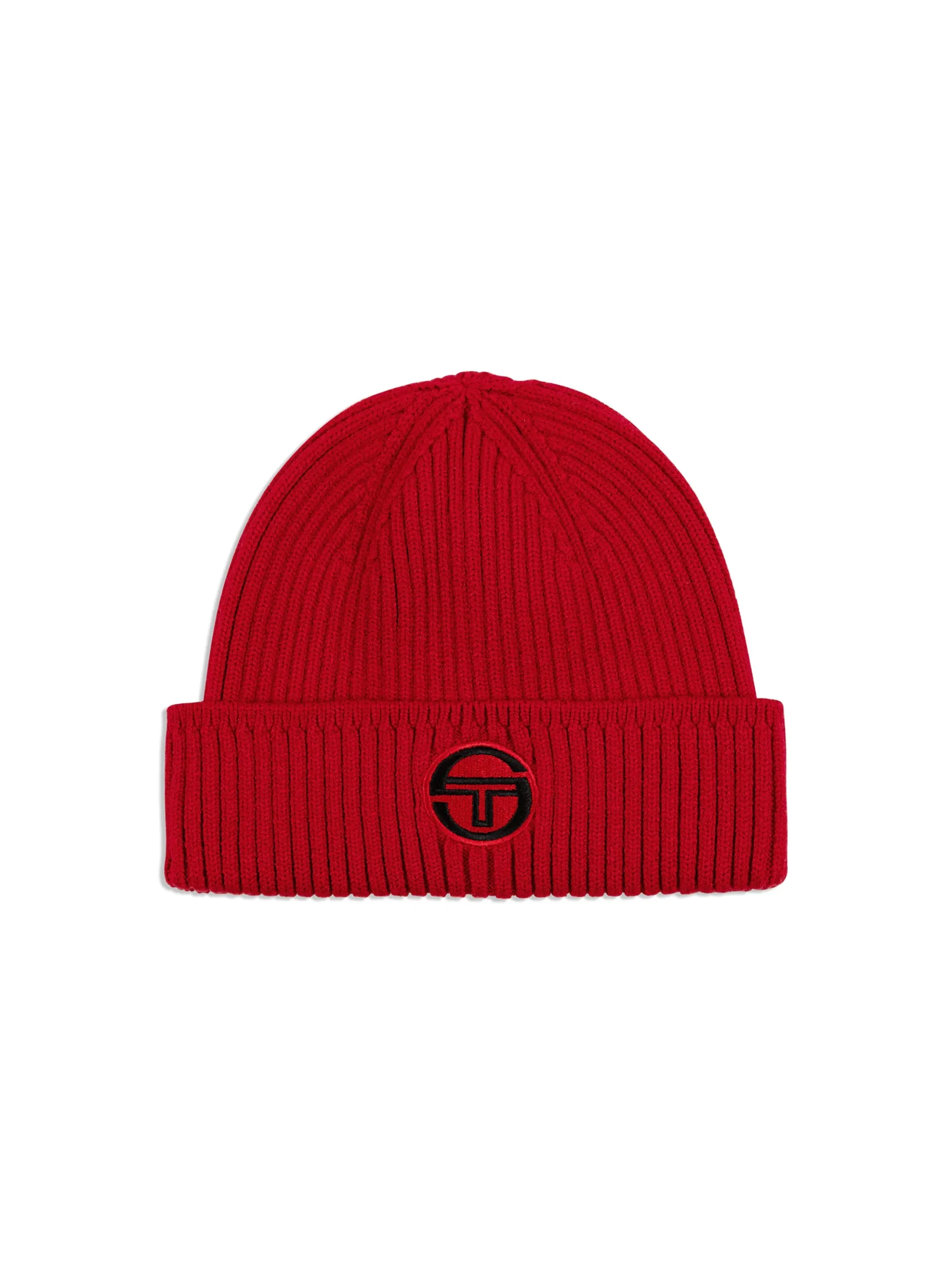 An easy-to-wear brand staple for cooler weather, the Tacchini Beanie is a classic fit fold-over watch cap in rib-knit featuring our iconic ‘ST’ monogram logo embroidered at the front cuff.