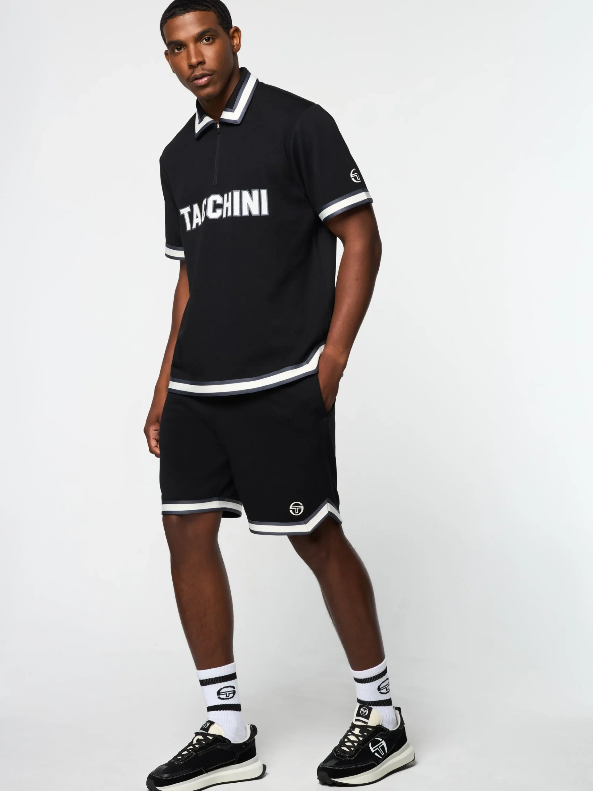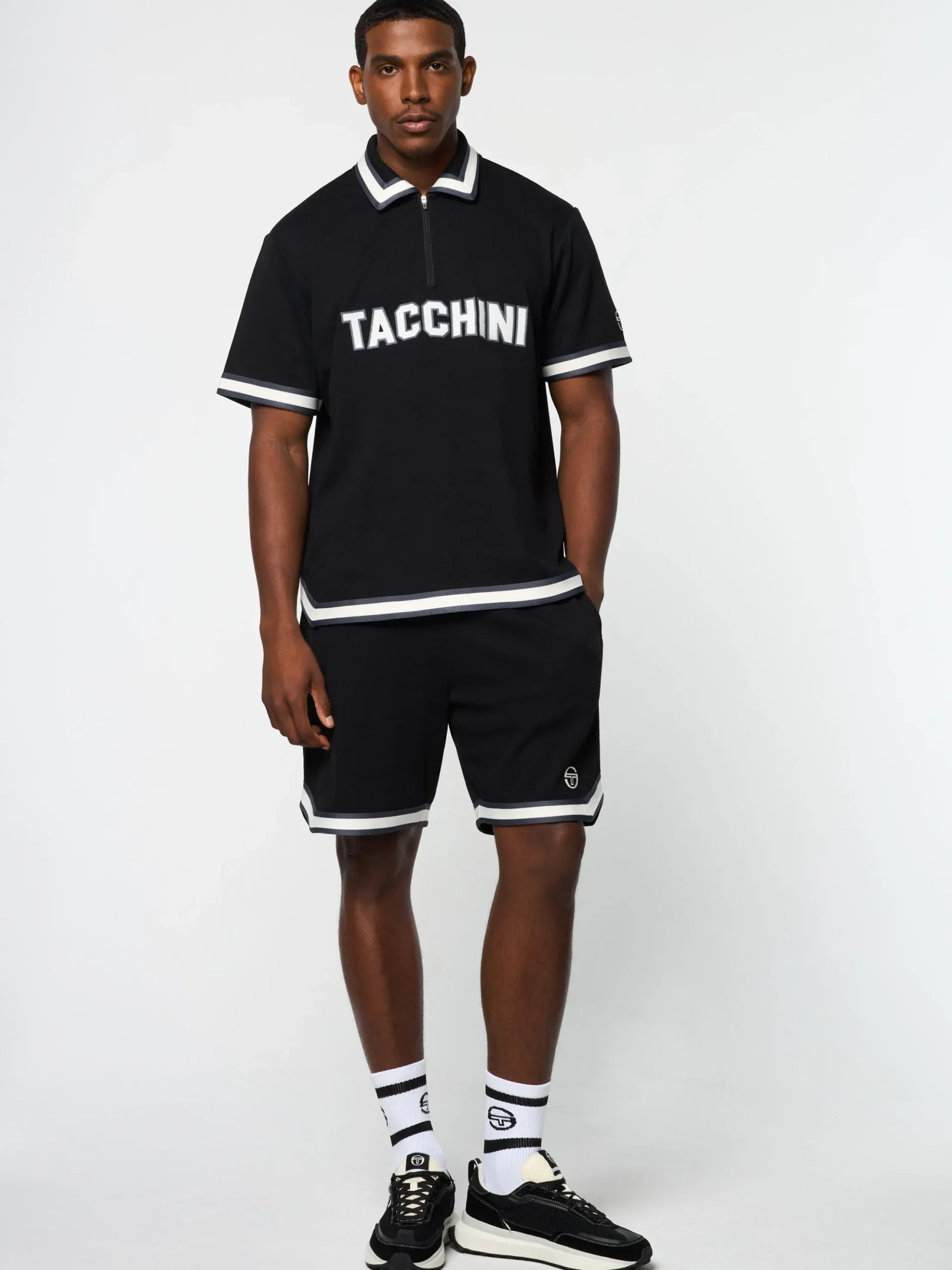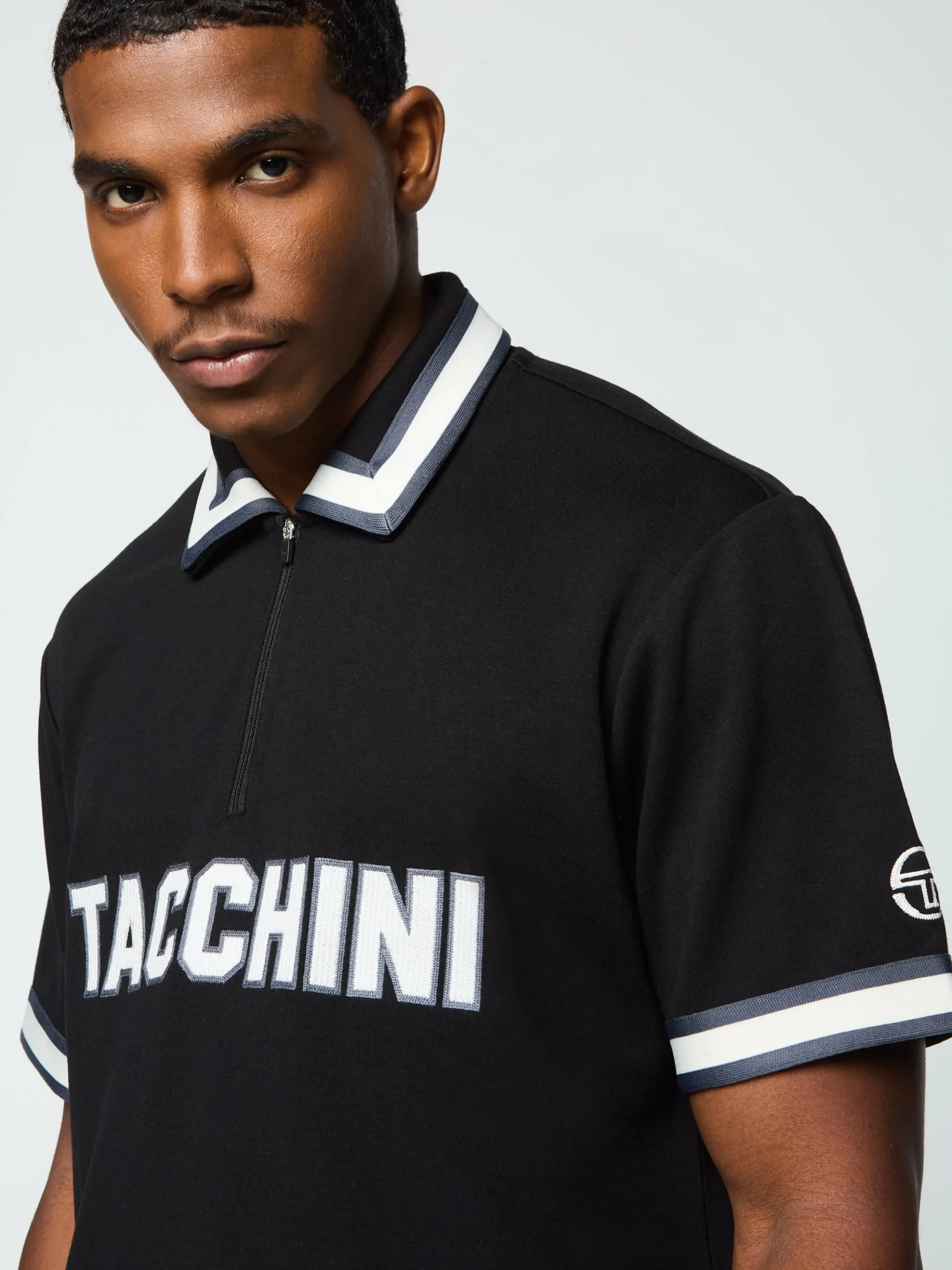 Keep it sharp with the elevated Tito Short Sleeve Polo, crafted from heavyweight interlock fabric with an incredibly soft hand and subtle stretch for a refined finish. Topped with a zippered placket, this premium polo is complete with a notched hem, striped rib-knit taping at the trims, and a bold chainstitched Tacchini logo at the chest.