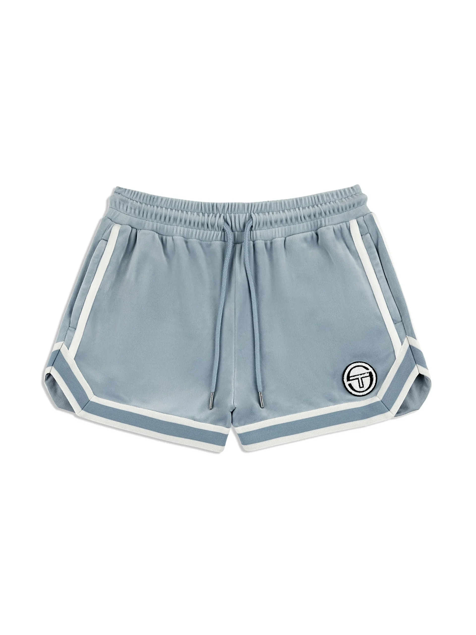 Crafted from ultra-soft velour, the Veneto Short features a plush chenille ‘ST’ monogram patch and contrast striping accents for a playful twist on varsity athletics and cheerleader fashion. Complete with a comfy drawstring waistband and a retro notched hem, these luxe shorts are part of our seasonal “New Ivy” capsule—a contemporary take on collegiate prep aesthetics.