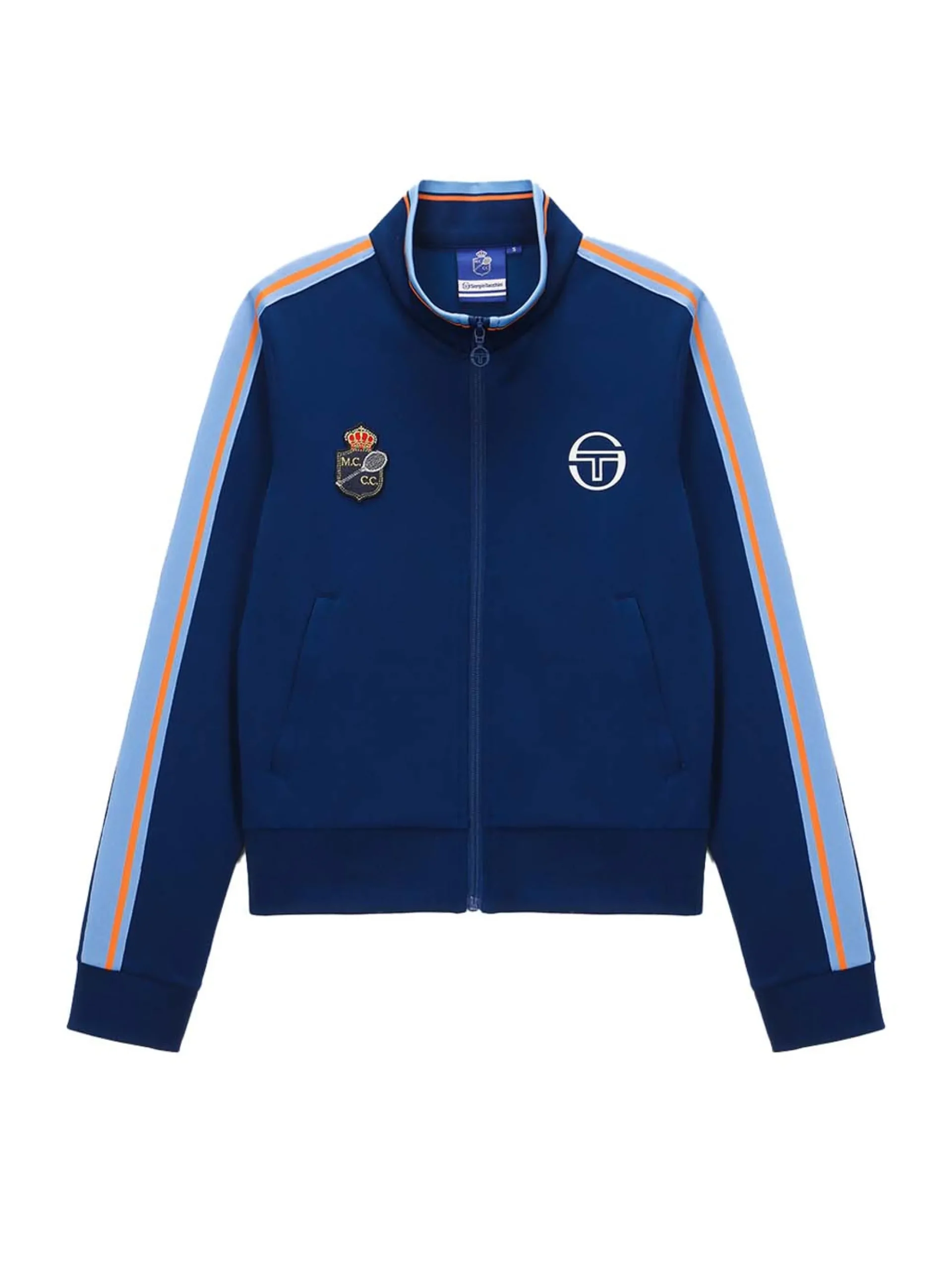 The Women’s SRE Staff Track Jacket is part of our dedicated collection designed for staff at the annual Rolex Monte-Carlo Masters Tournament. Featuring contrast striping down the sleeves and at the collar, this premium full-zip track jacket is complete with Monte Carlo Country Club’s prestigious crown logo in an embroidered patch at the right chest.