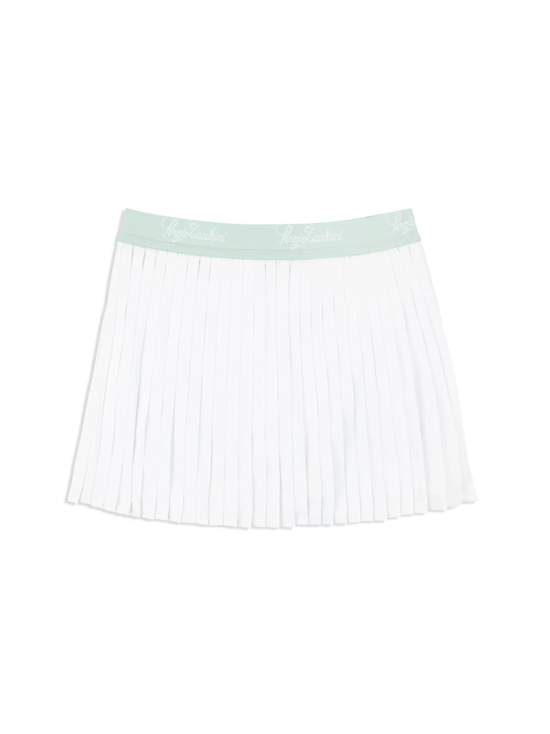 Keep your flow going with our super-comfy Zambrini Skort. Topped with a contrast elastic waistband featuring a Sergio Tacchini script logo repeat, this flowy pleated skirt is styled over supportive stretch undershorts to keep you moving comfortably through any workout.