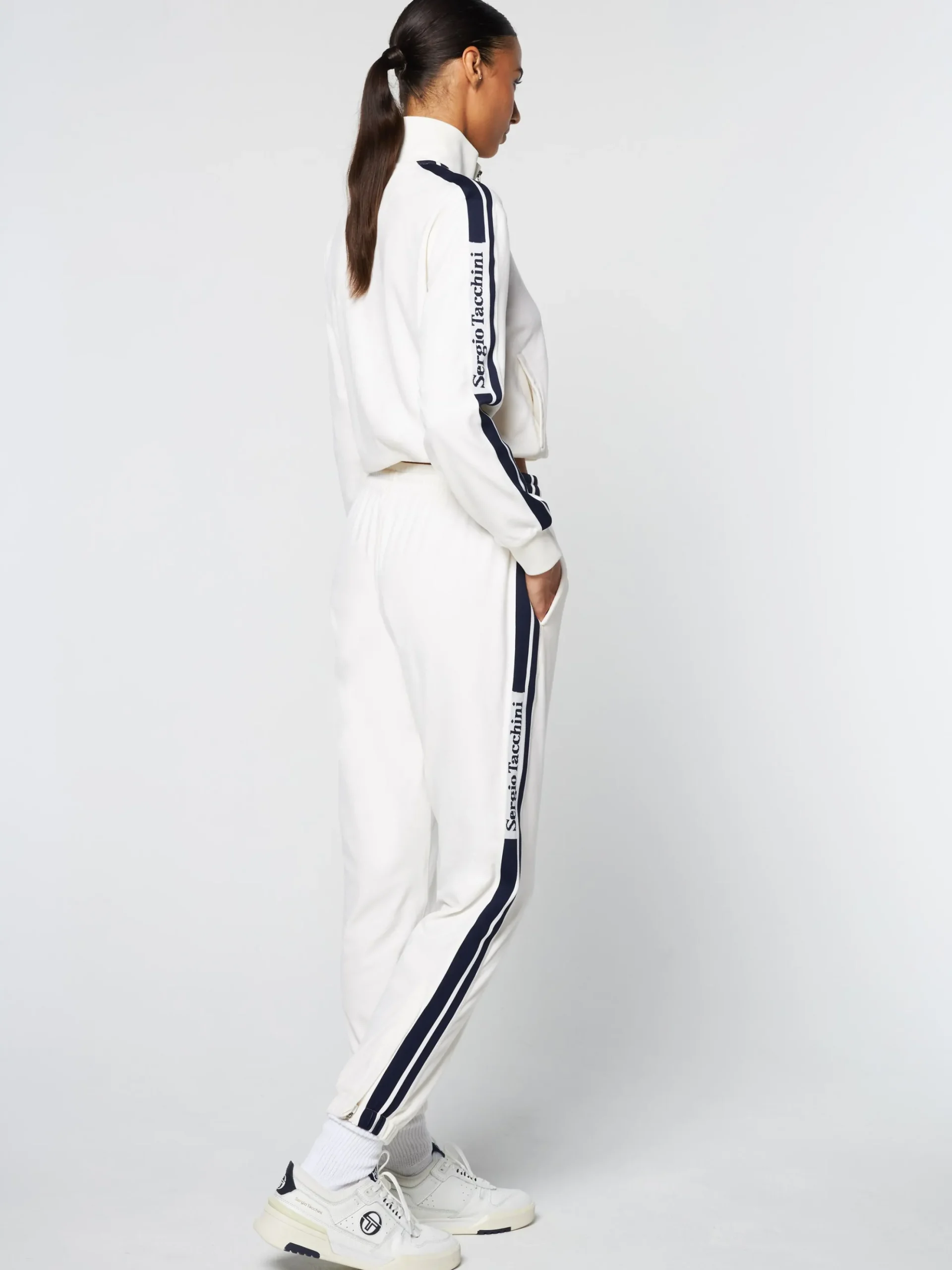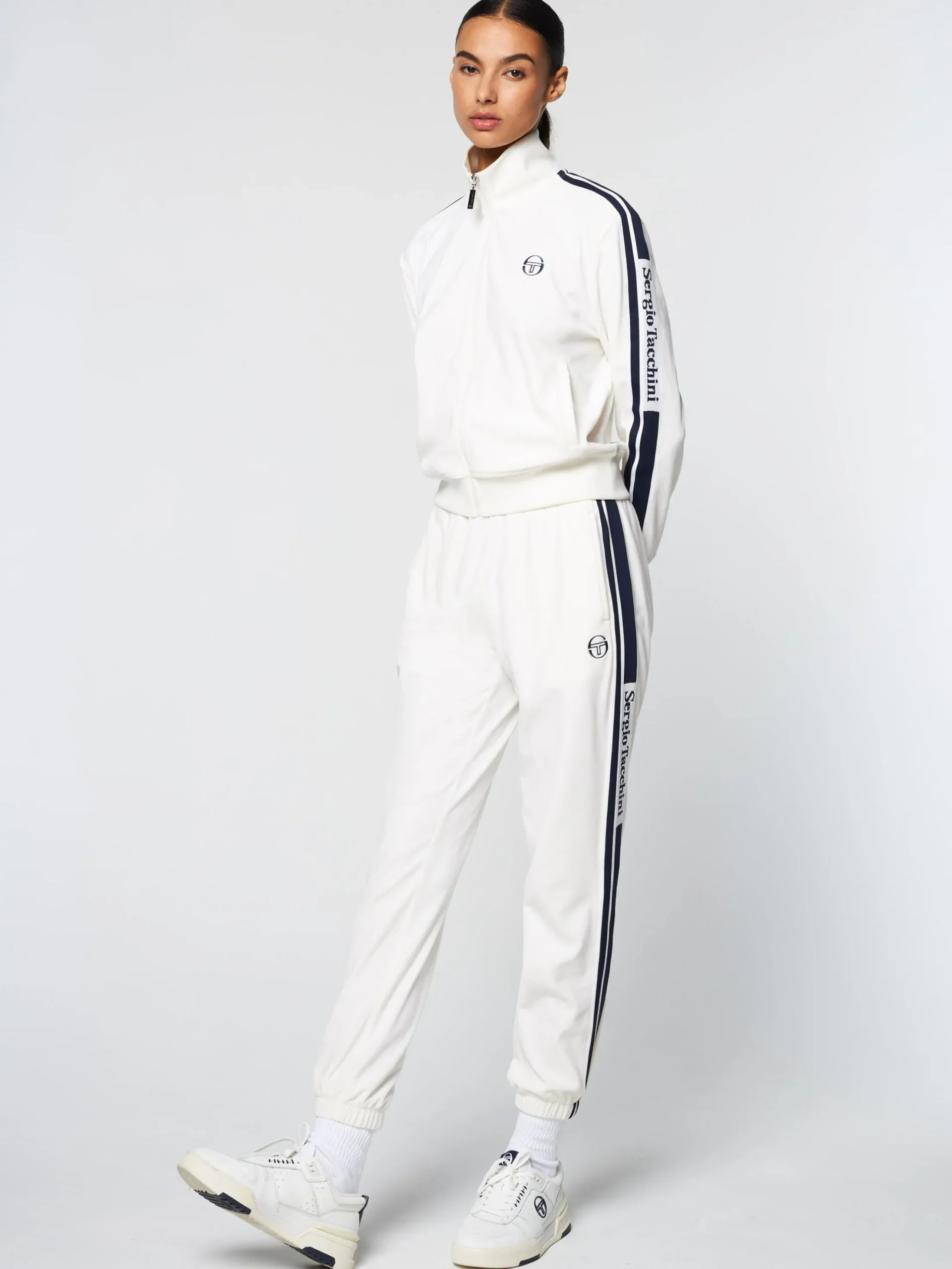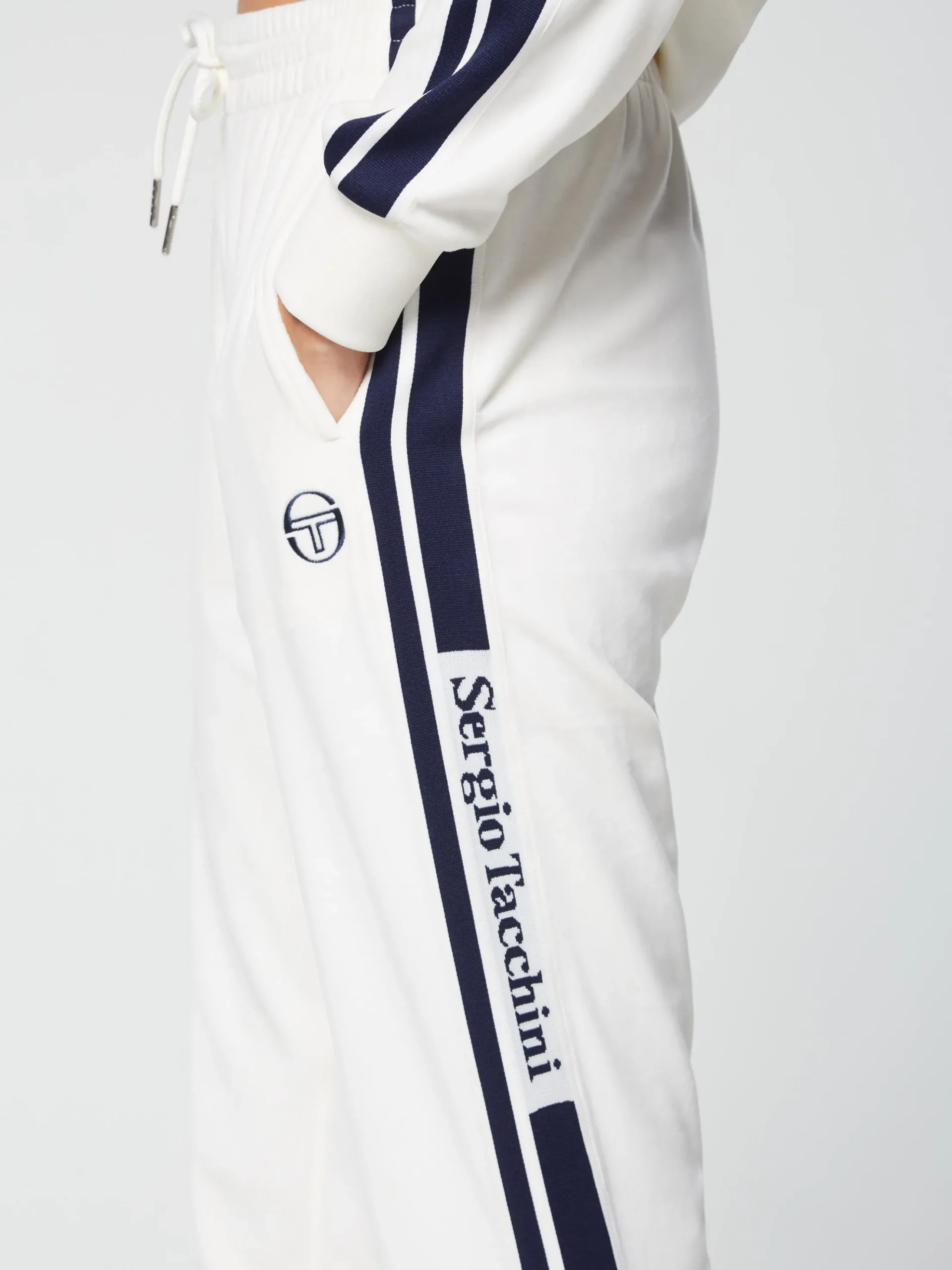 Crafted from plush velour for a soft and luxurious feel, the Atri Velour Track Pant features Sergio Tacchini-branded stripe taping down the legs and our iconic ‘ST’ monogram embroidered at the thigh. Cut with an elastic waist for a secure fit, these elevated for-her track pants are complete with spacious pockets and adjustable ankle zips.