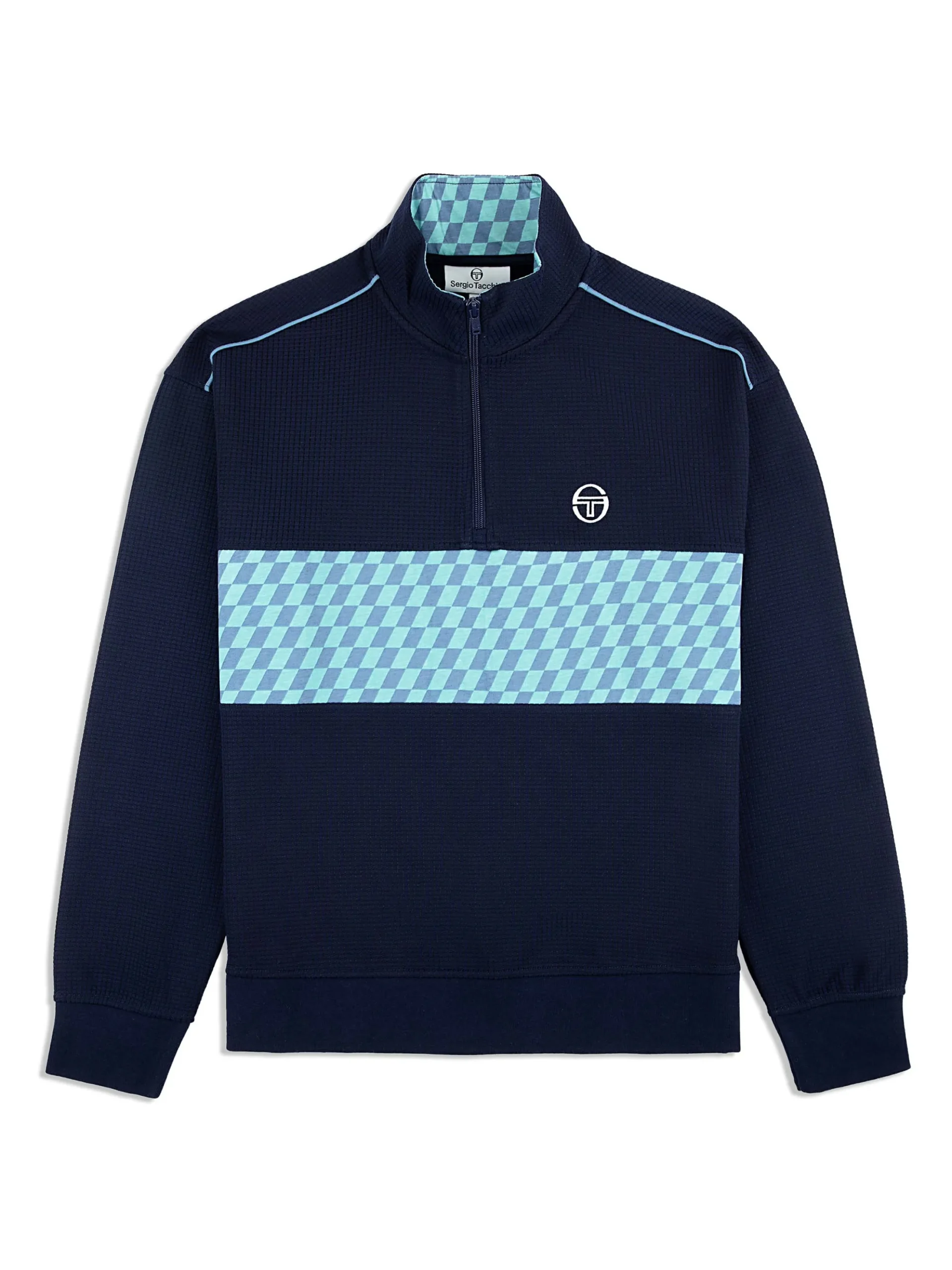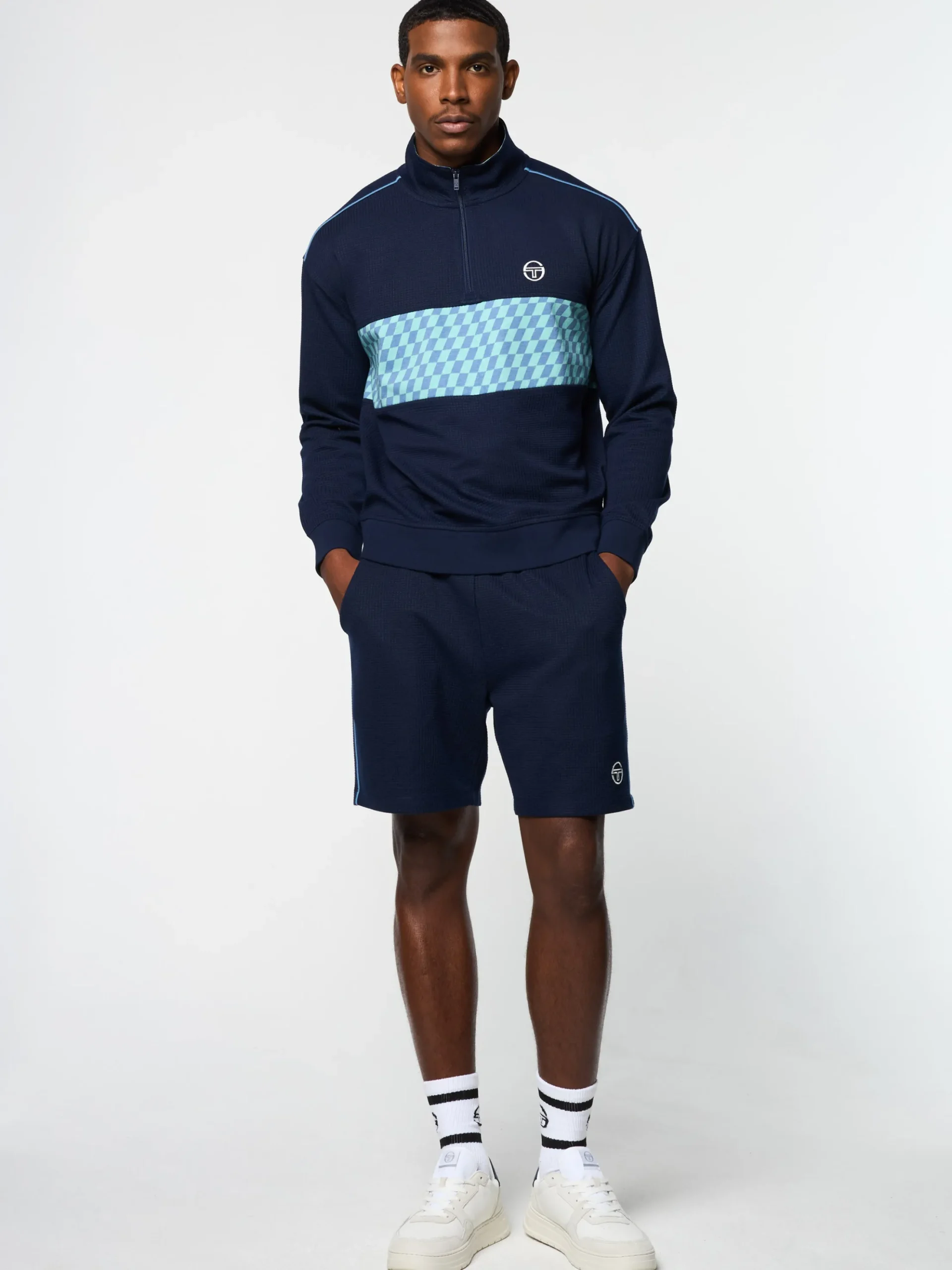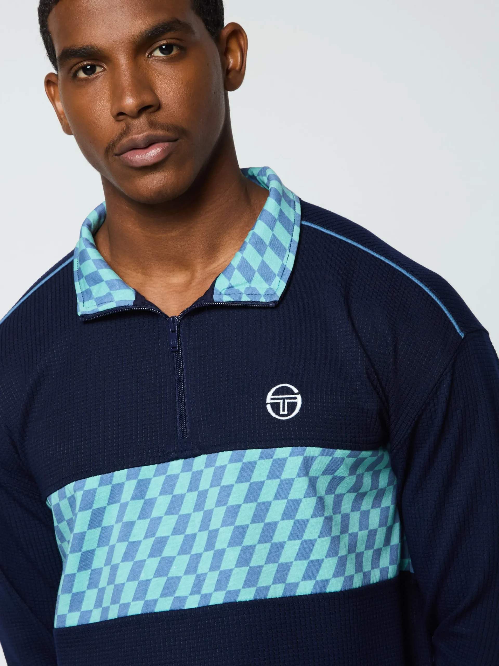 A fresh take on performance sportswear, the Cialda Half Zip is a cozy waffle knit featuring a retro pop color checkerboard print to keep you stylish and comfortable from morning warm-ups to evening outings. Cut with a half-zip stand-up collar for all-season climate control, this premium pullover is finished with contrast piping details and an embroidered ‘ST’ monogram logo.