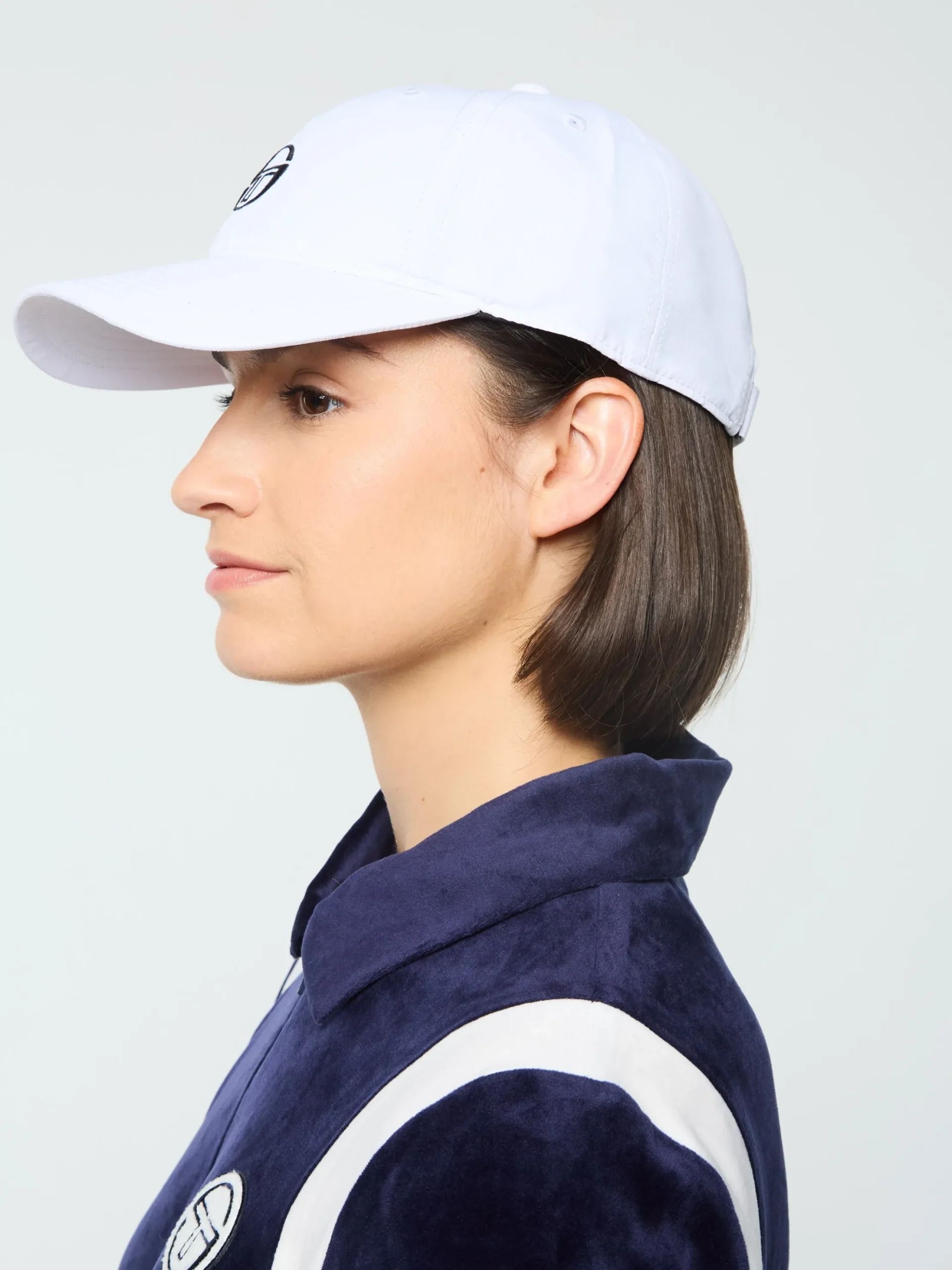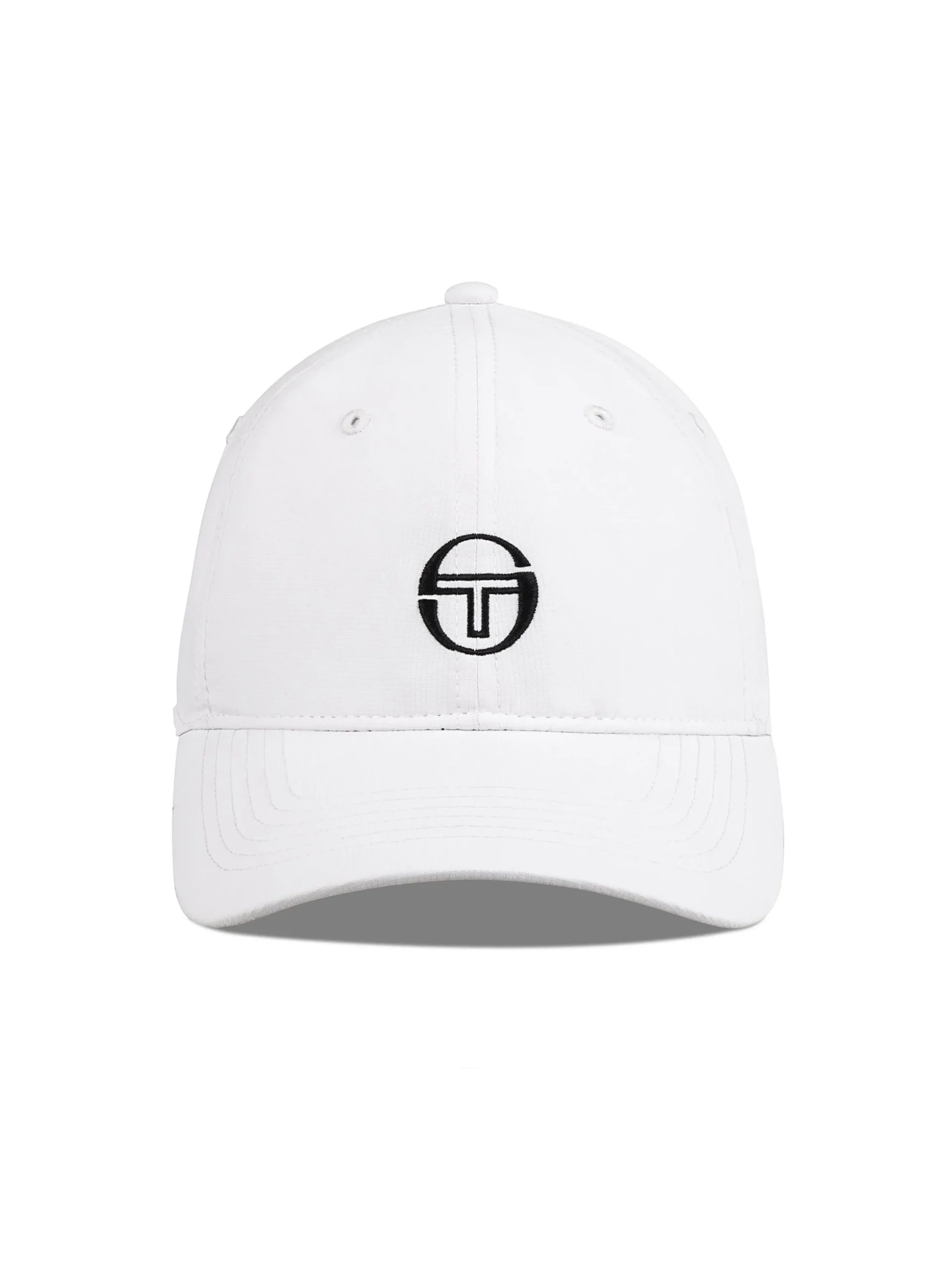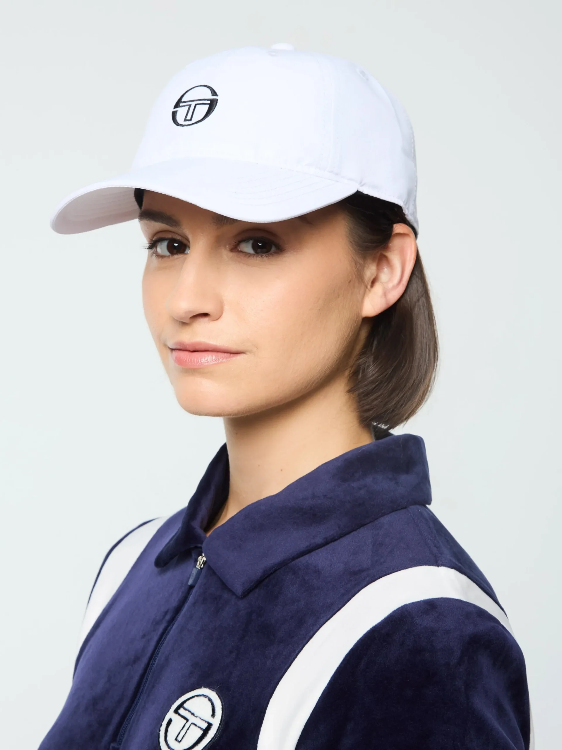 Keep your cool from the court to the street with our low-profile Court Hat. Made of lightweight and durable ripstop, this classic 6-panel cap features embroidered Sergio Tacchini logos, a curved visor, and an adjustable velcro strap for the perfect fit.