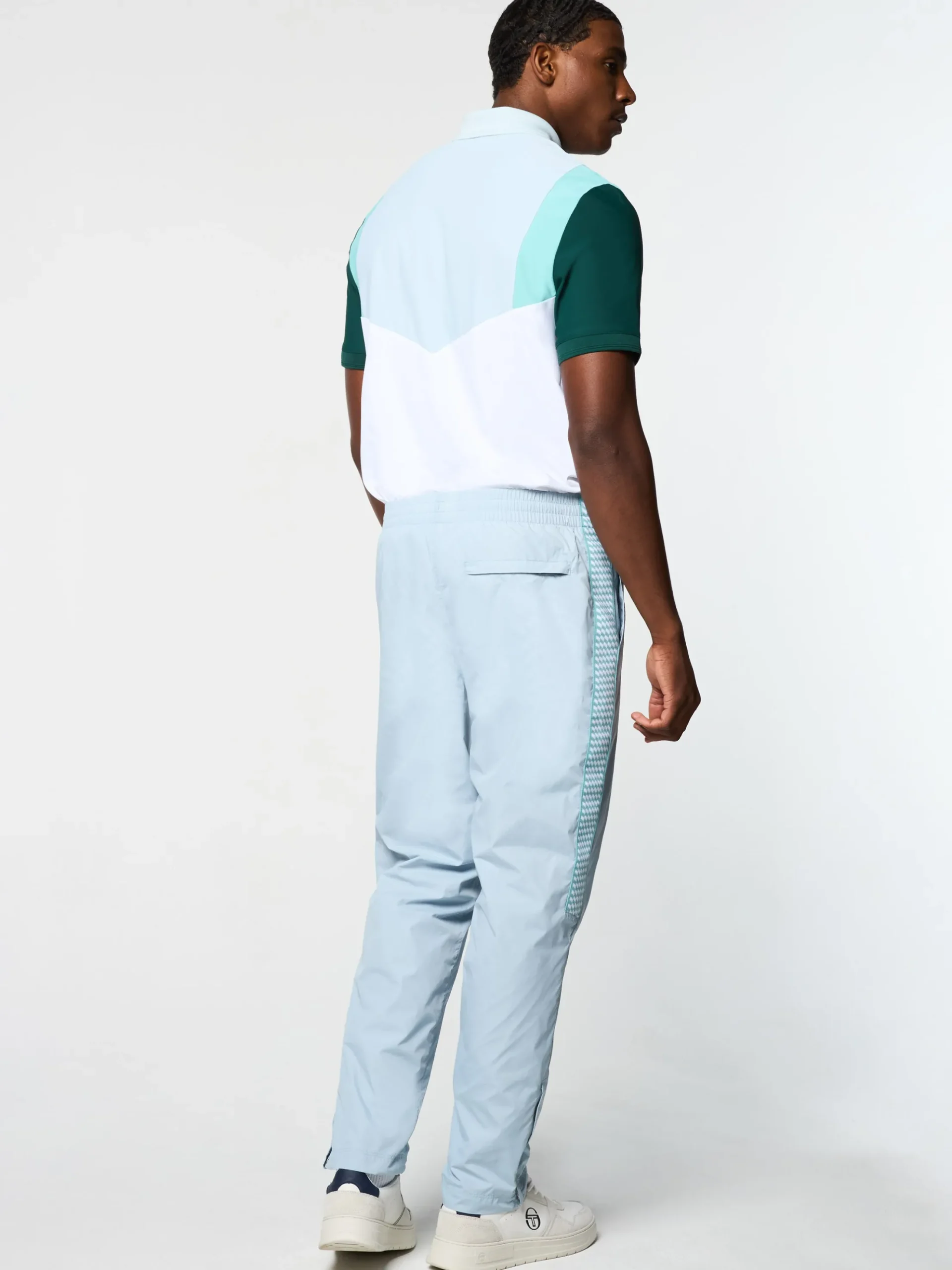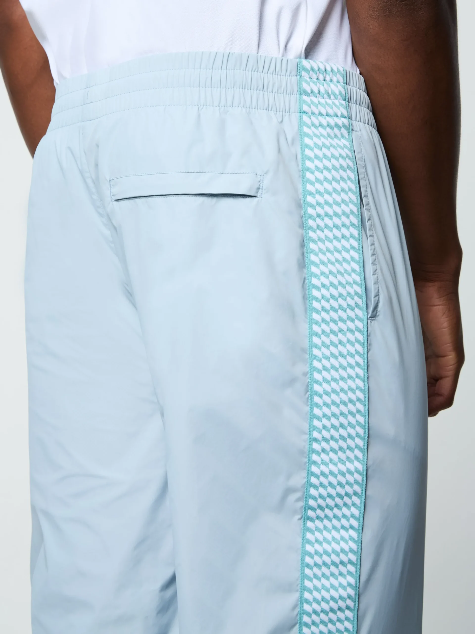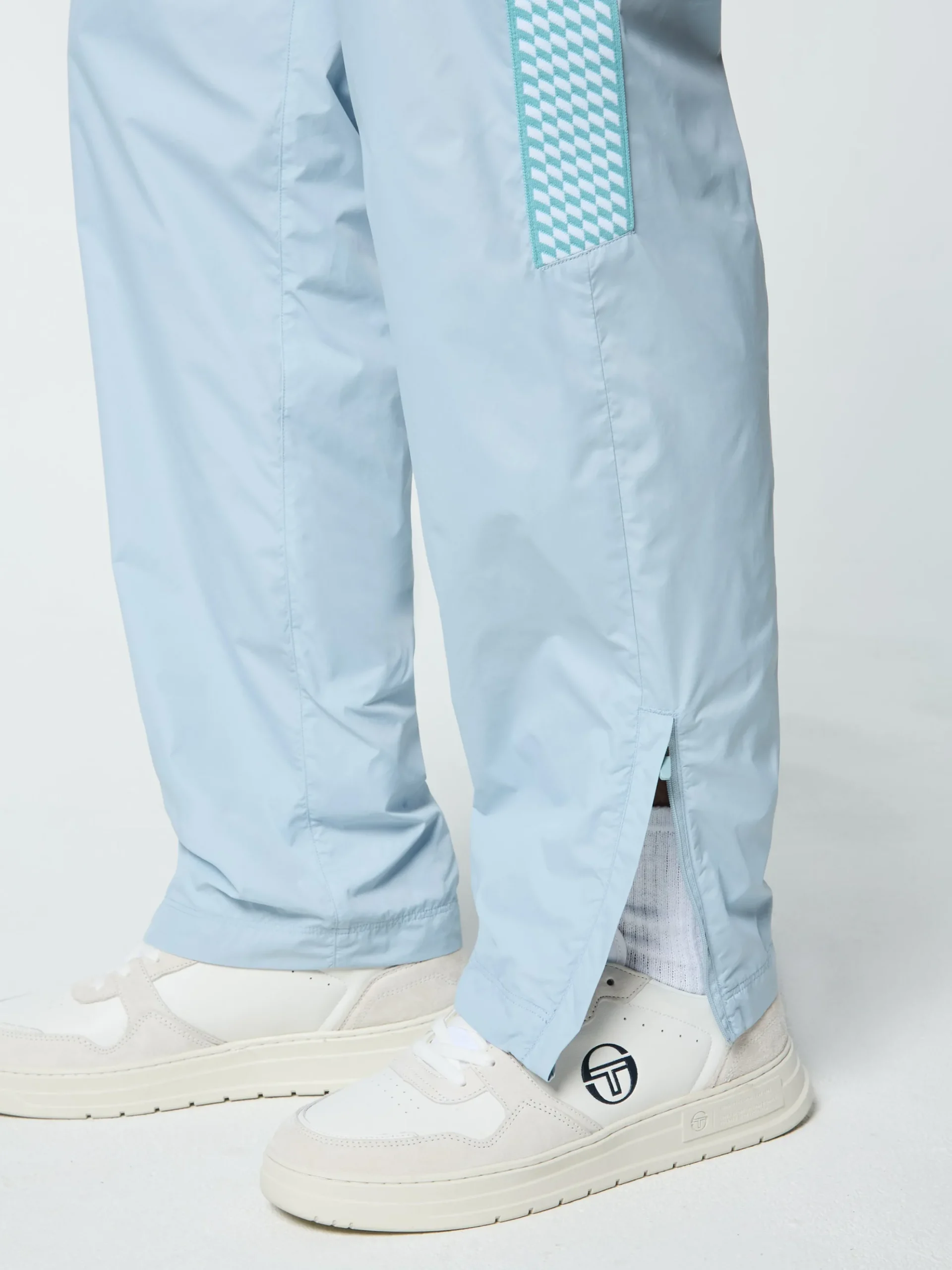A clean take on classic sportswear, the Dama Track Pant is made of smooth and lightweight nylon taffeta with checkered taping at the upper legs for style and comfort from the court to the streets. Topped with a comfortable drawcord waistband, these court-ready track pants are complete with spacious pockets and adjustable ankle zips.