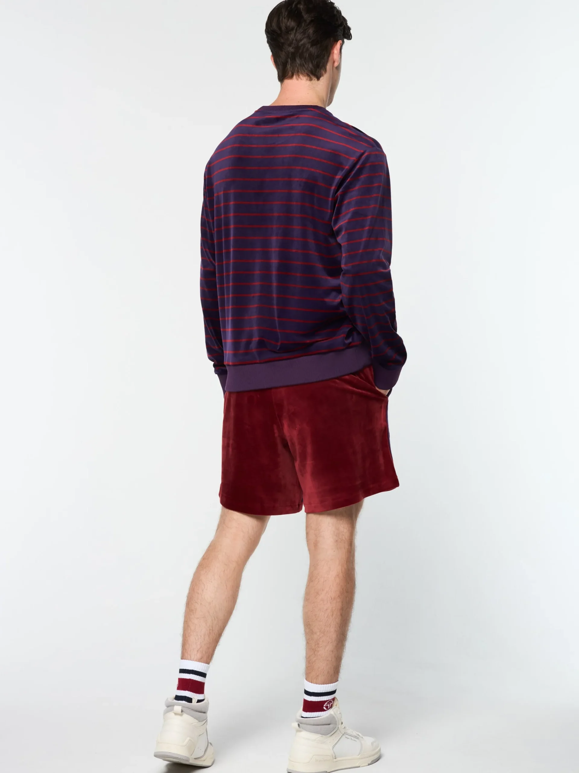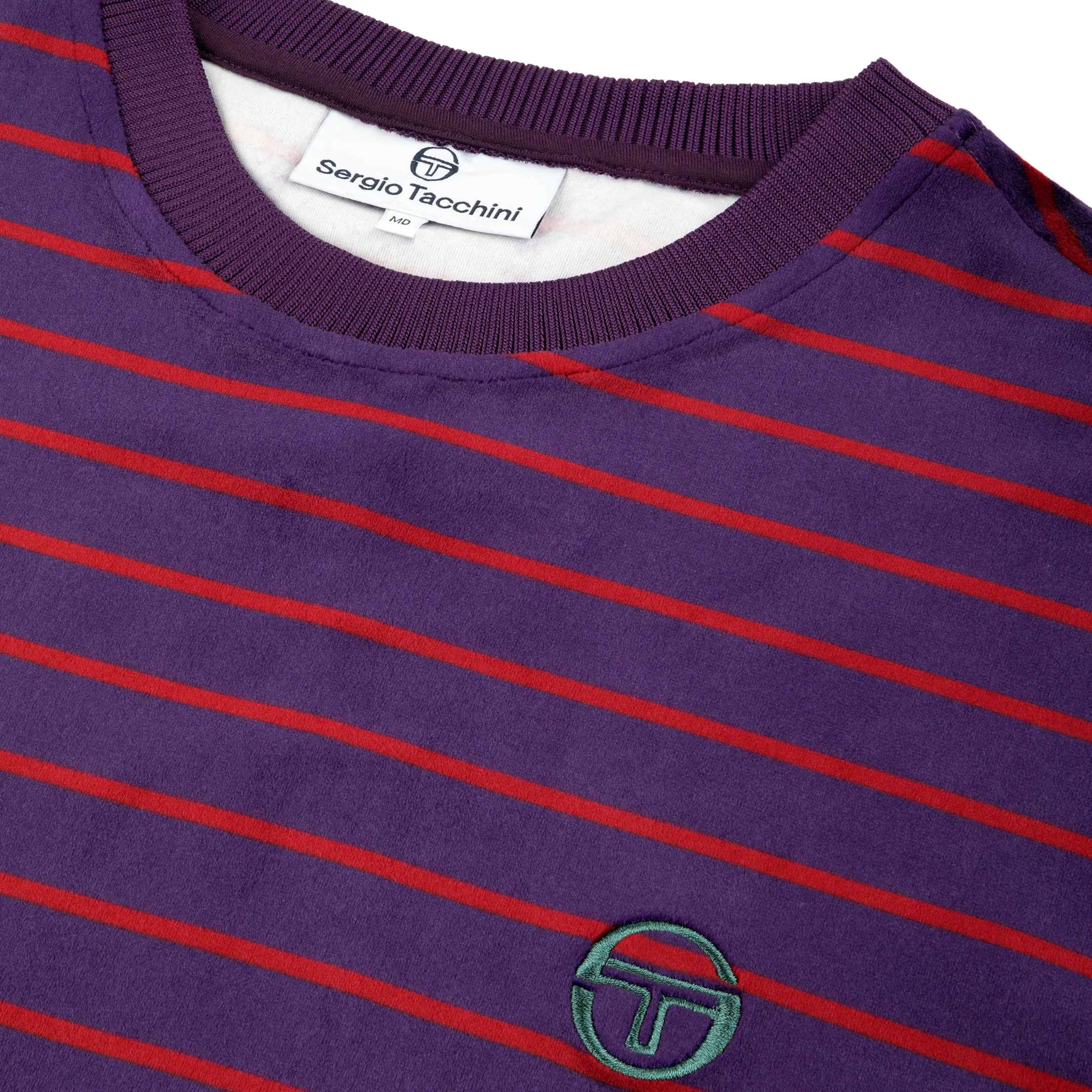 - Premium striped velour crewneck sweatshirt