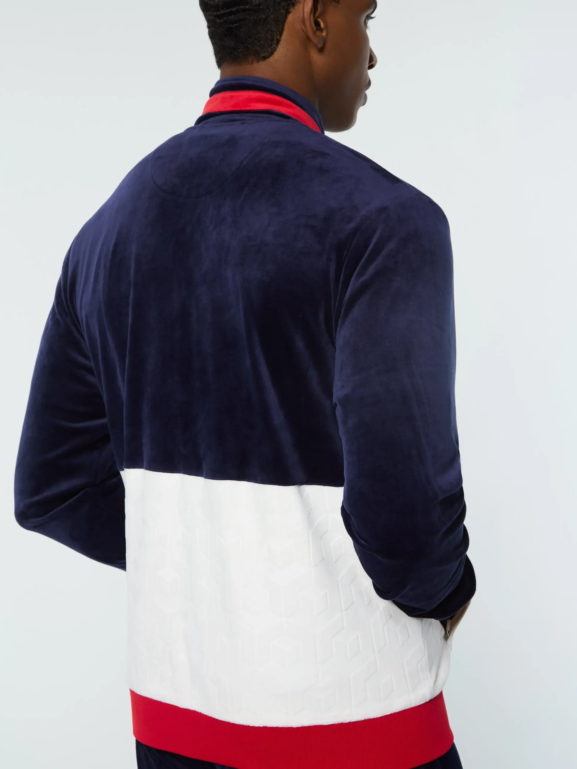 Elevate your everyday with the Foggia Velour Debossed Track Jacket, crafted from super plush velour with a debossed geometric motif for a luxurious spin on classic sportswear. Offered up in a color-blocked silhouette, this premium full-zip is complete with spacious zip-secured pockets and an embroidered ‘ST’ monogram logo.