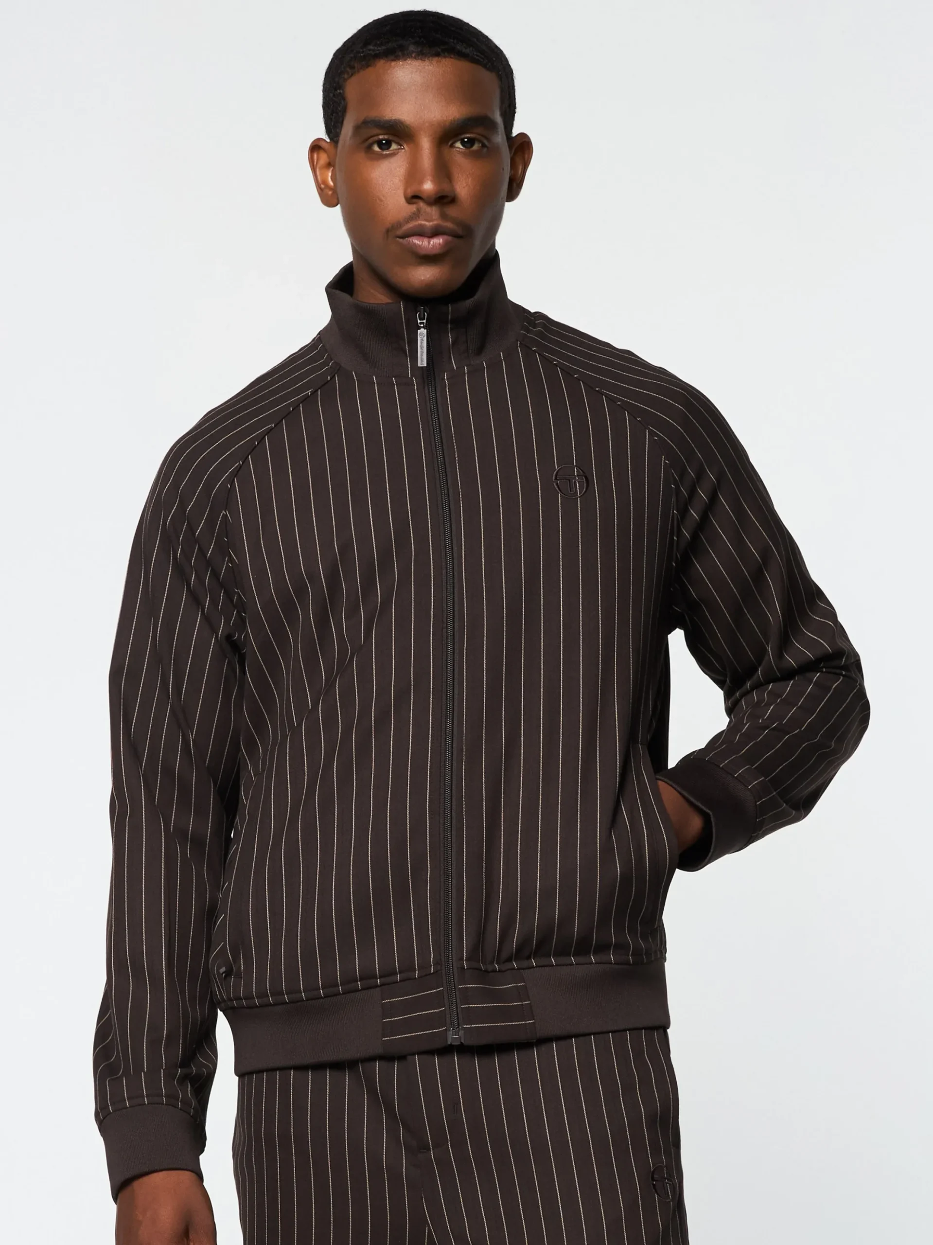 Keep it classy with the Gessato Suiting Track Jacket, crafted from stretch pinstripe fabric with a tailored wool handfeel for a premium take on classic sportswear. Cut with a full-zip front for easy layering, this luxe track jacket is complete with subtle piping details and zippered pockets to secure your essentials.