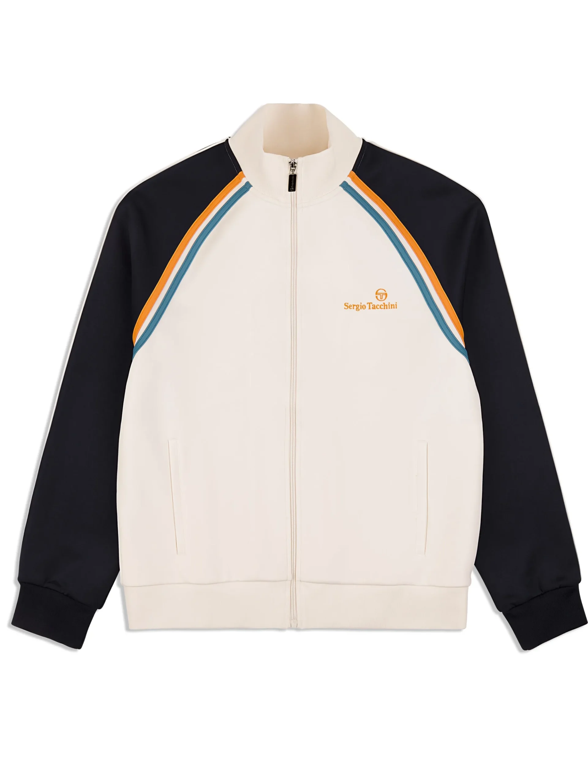 Part of our heritage Archivio collection—celebrating classic pieces from the Tacchini archive—the Ghibli Track Jacket is a retro reissue of the original design popularized by the US Davis Cup tennis team in the ’80s. An easy-to-wear favorite, this premium zip-up jacket features taping stripes at the arm holes, contrast piping down the sleeves, and an embroidered logo at the left chest.