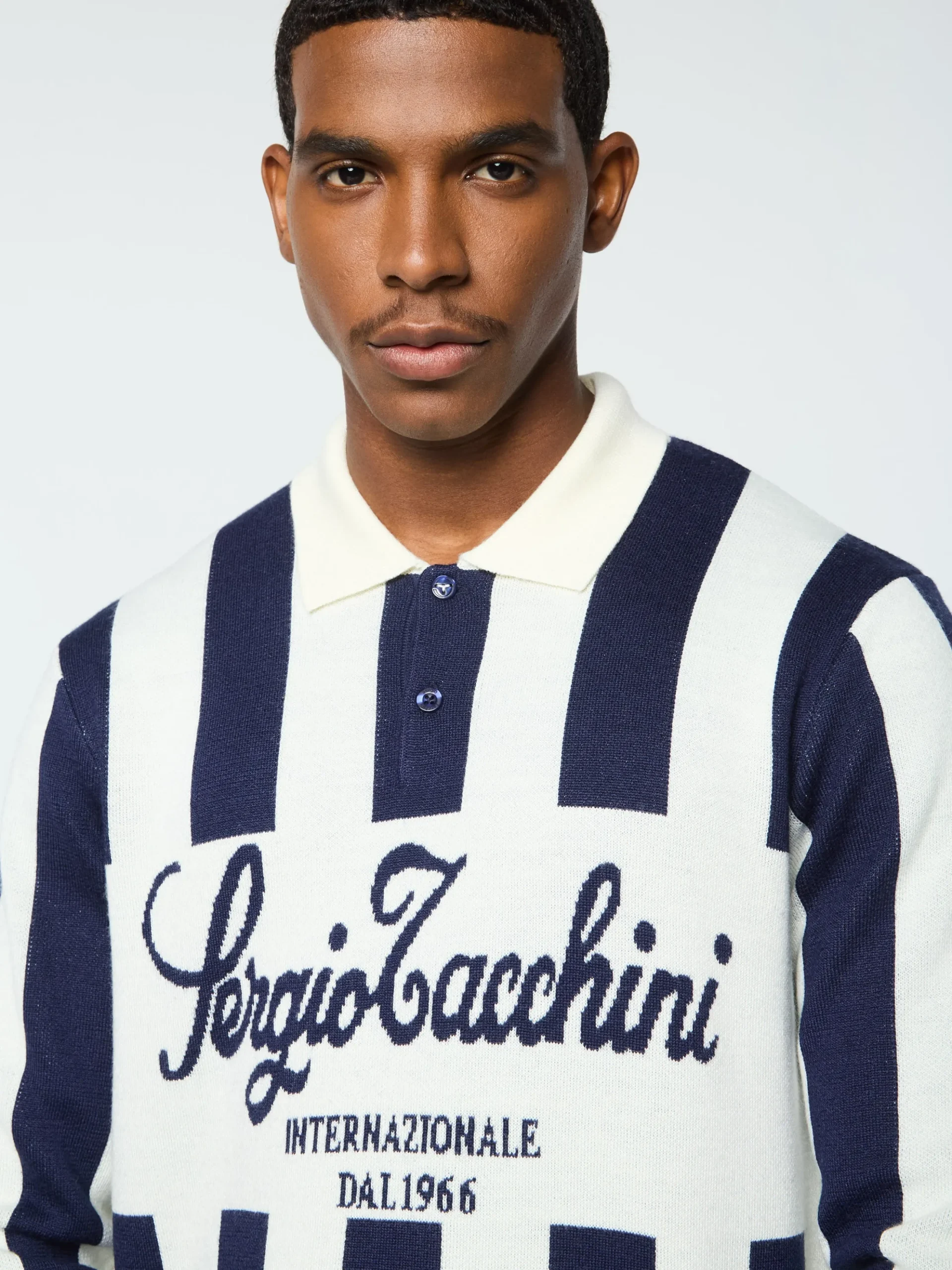 - Jacquard-knit Sergio Tacchini script logo at chest and all-over vertical striping