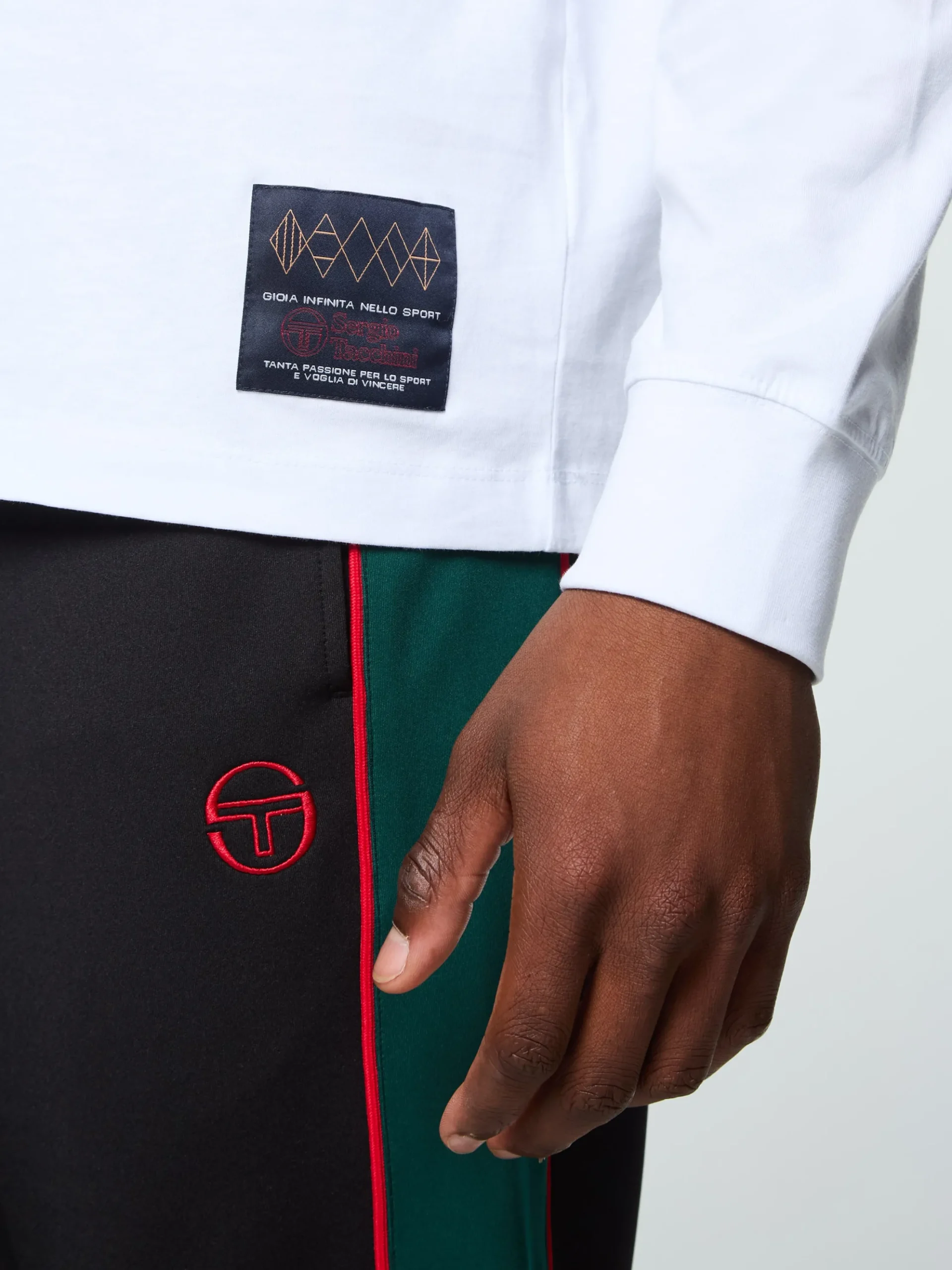 Long sleeve t-shirt100% cotton jerseyCustom woven locker label at left hemSeasonal Sergio Tacchini artwork printed at ba…