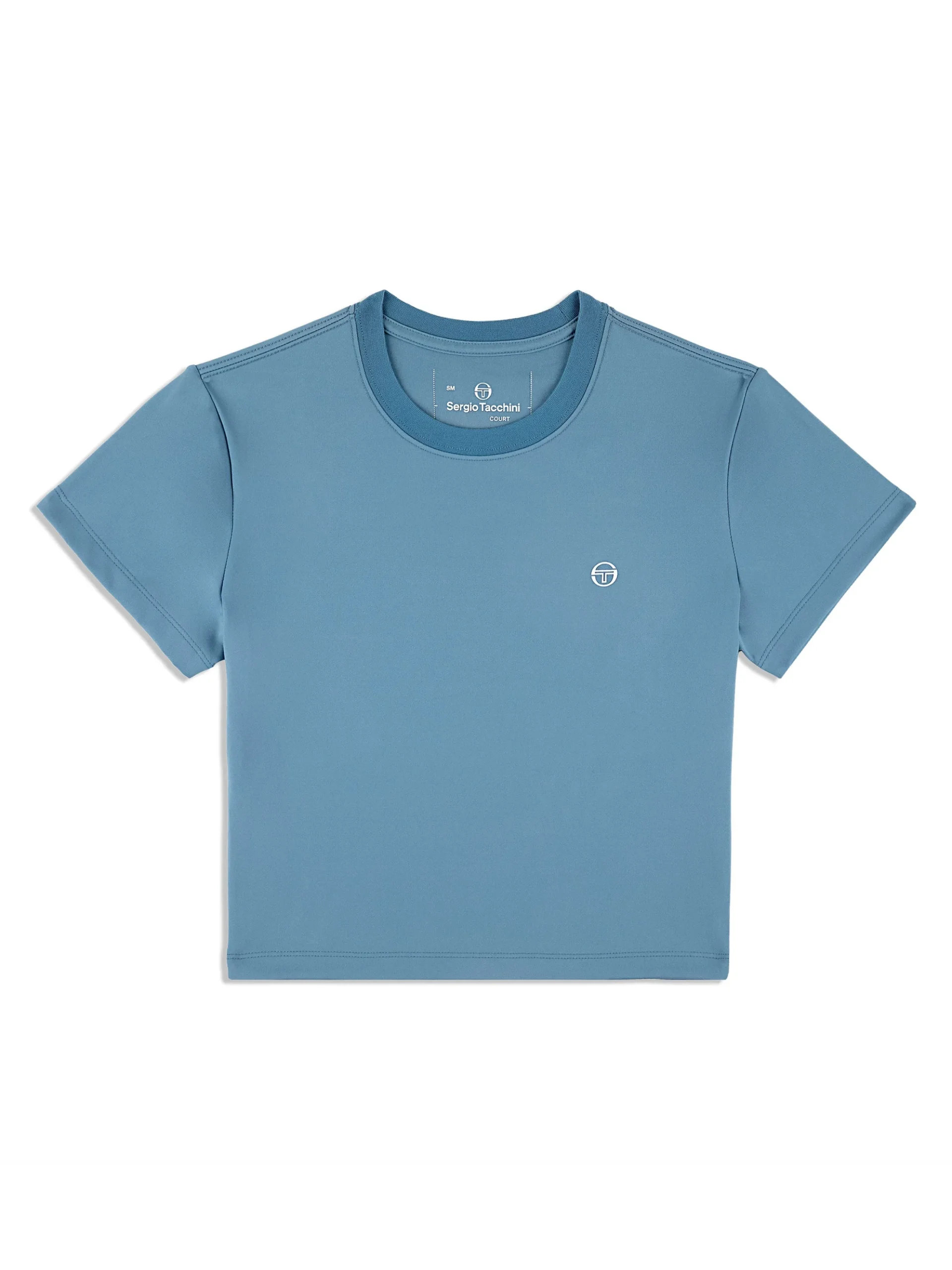 Crafted from buttery-soft, 4-way stretch fabric with moisture wicking properties, our Mirano Fitted Crop Top is the perfect fit for workouts and casual everyday wear. Featuring our iconic ‘ST’ monogram logo at the chest, this form-fit tee is cut cropped for easy styling over your favorite exercise shorts and leggings.