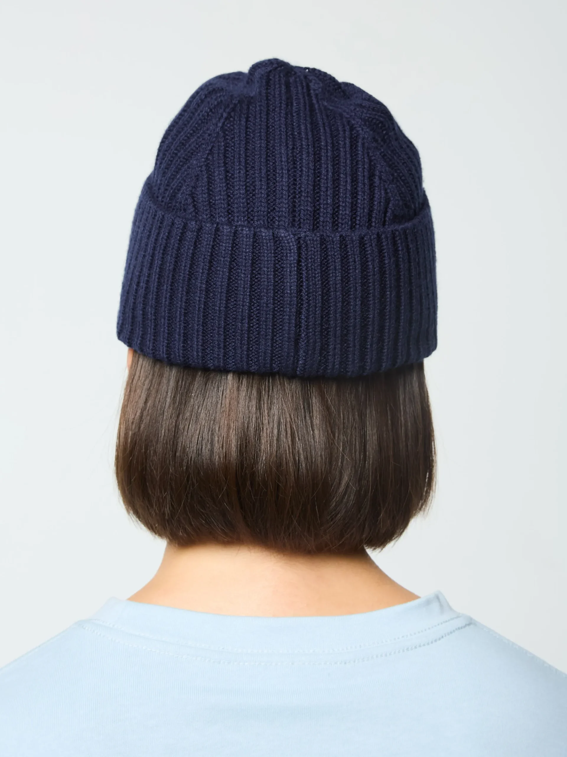 - Rib-knit fold-over beanie
