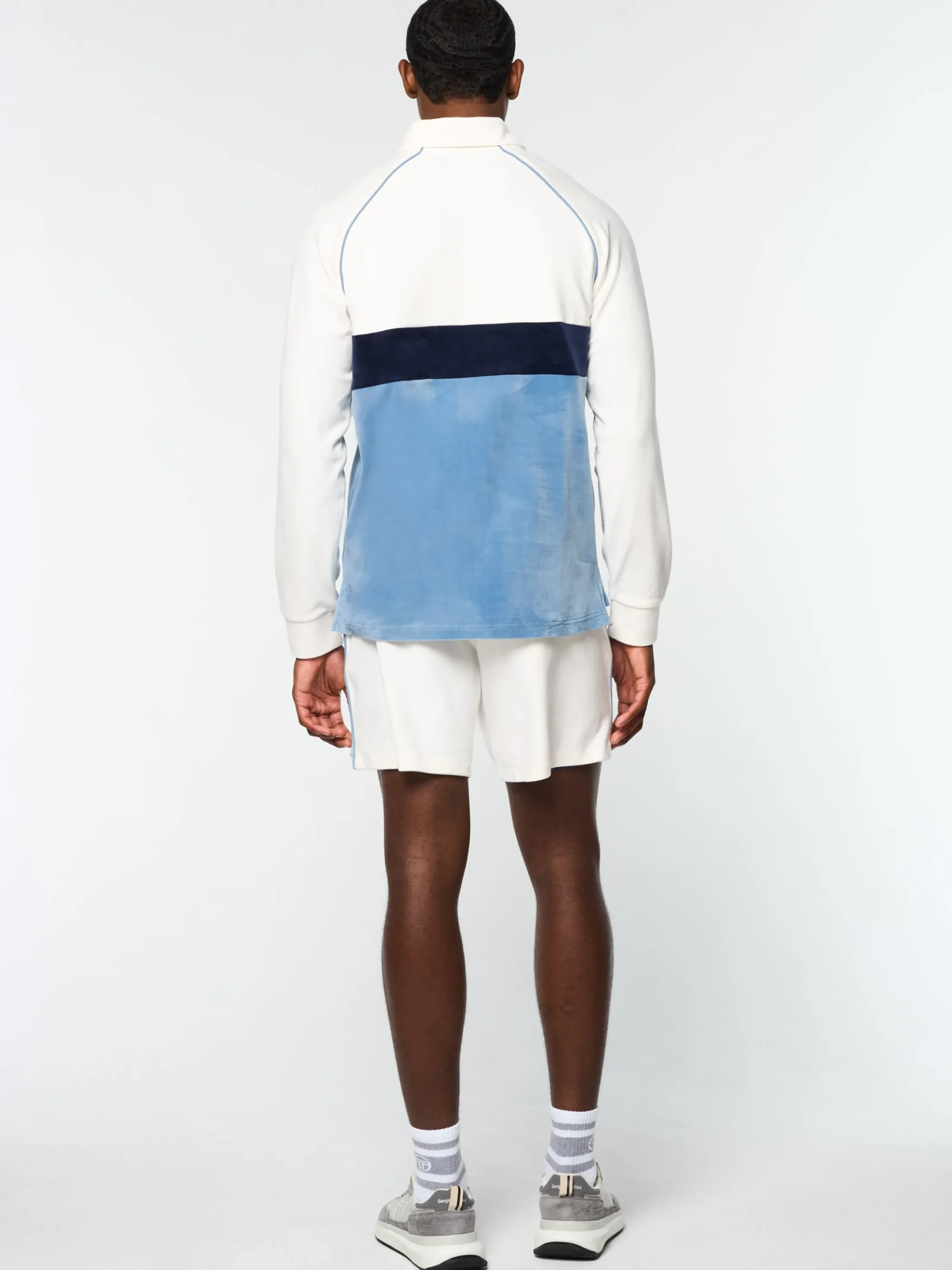 Keep it classy in our premium Noci Velour Long Sleeve Polo, crafted from incredibly plush velour in a color-blocked silhouette for a luxurious vibe. Topped with contrast piping details and a 3-button placket for easy venting, this elevated polo is an effortless blend of sporty style and comfort.