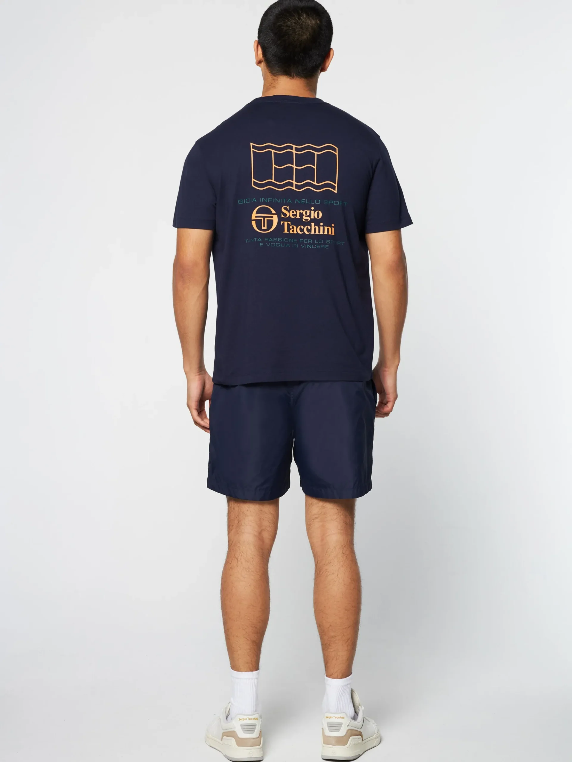 The Onda T-Shirt is made of pure cotton and features seasonal Sergio Tacchini artwork printed at the left chest and back. Inspired by infinite joy in sport, the tee is complete with a custom woven locker label at the hem.