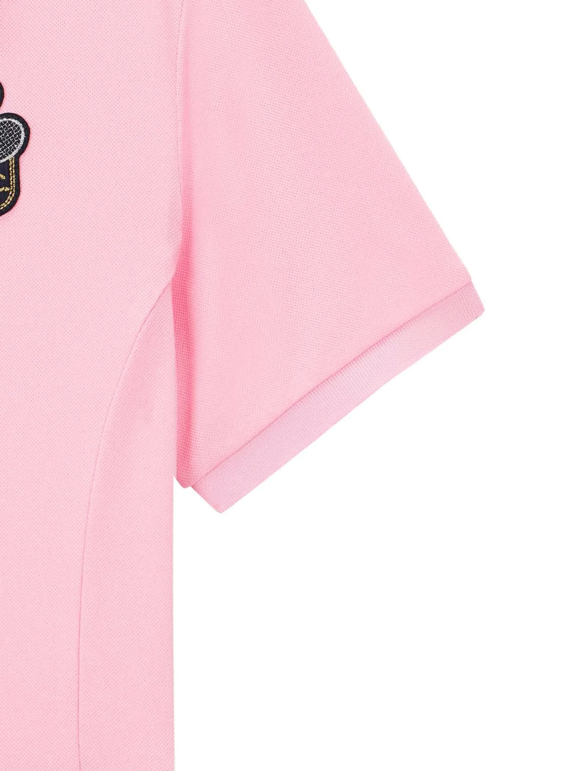 - Rib-knit polo collar, V-neck placket, and cuffs