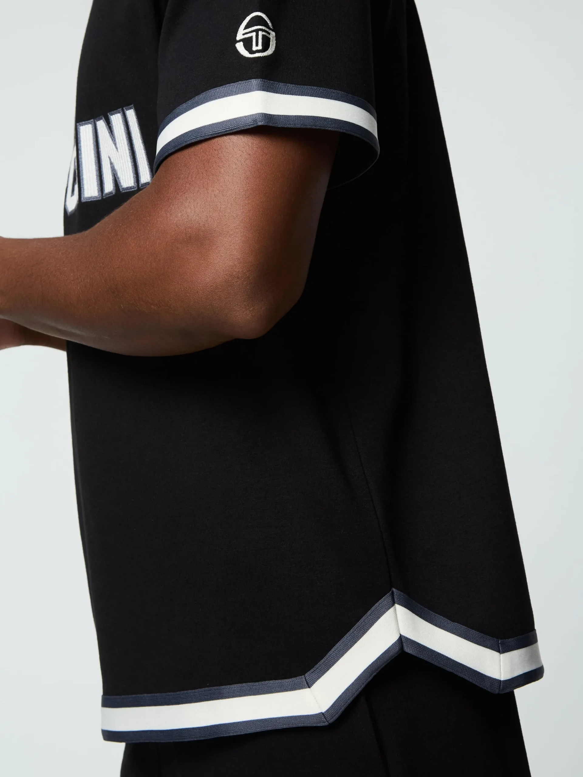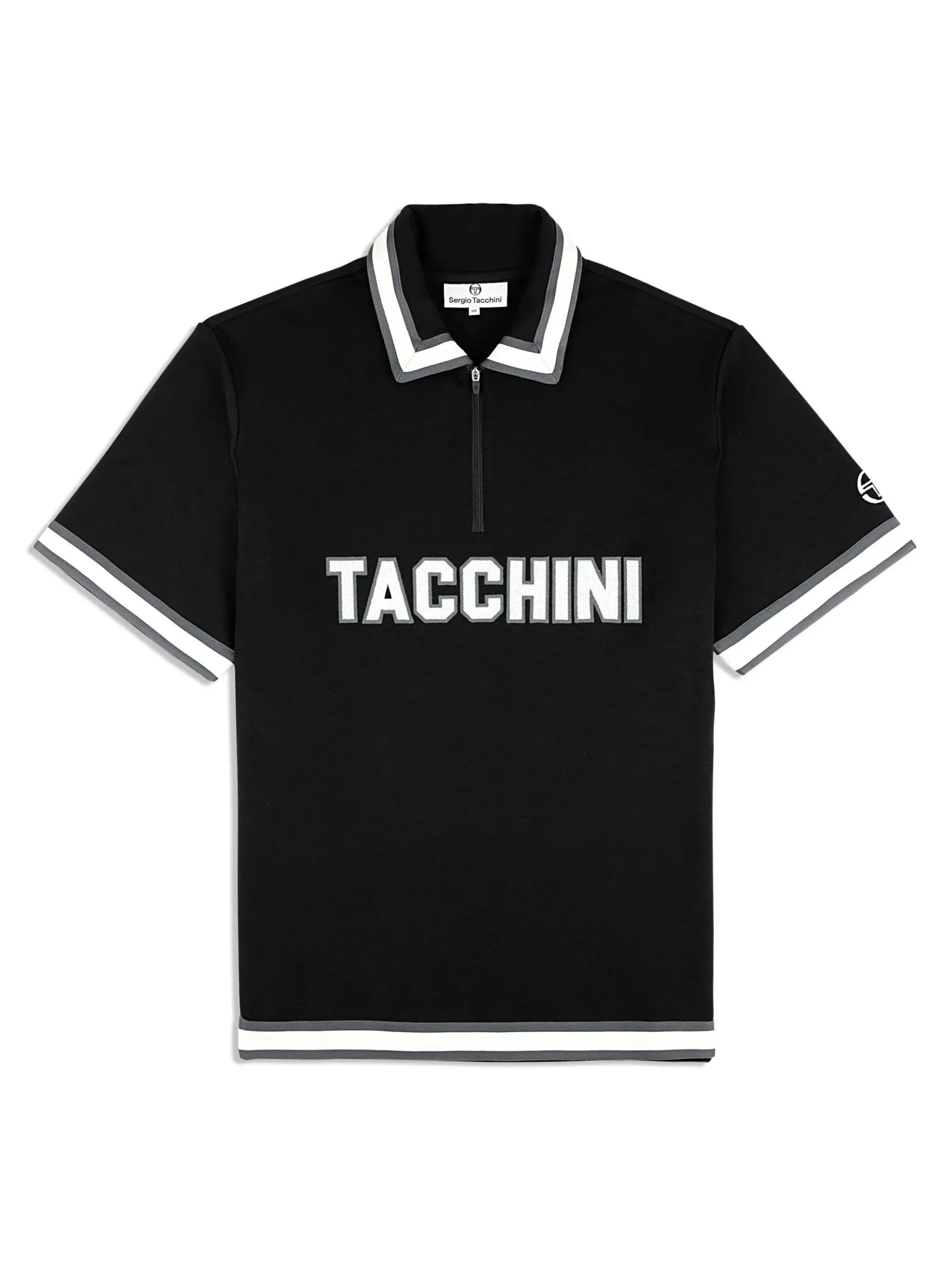 Keep it sharp with the elevated Tito Short Sleeve Polo, crafted from heavyweight interlock fabric with an incredibly soft hand and subtle stretch for a refined finish. Topped with a zippered placket, this premium polo is complete with a notched hem, striped rib-knit taping at the trims, and a bold chainstitched Tacchini logo at the chest.