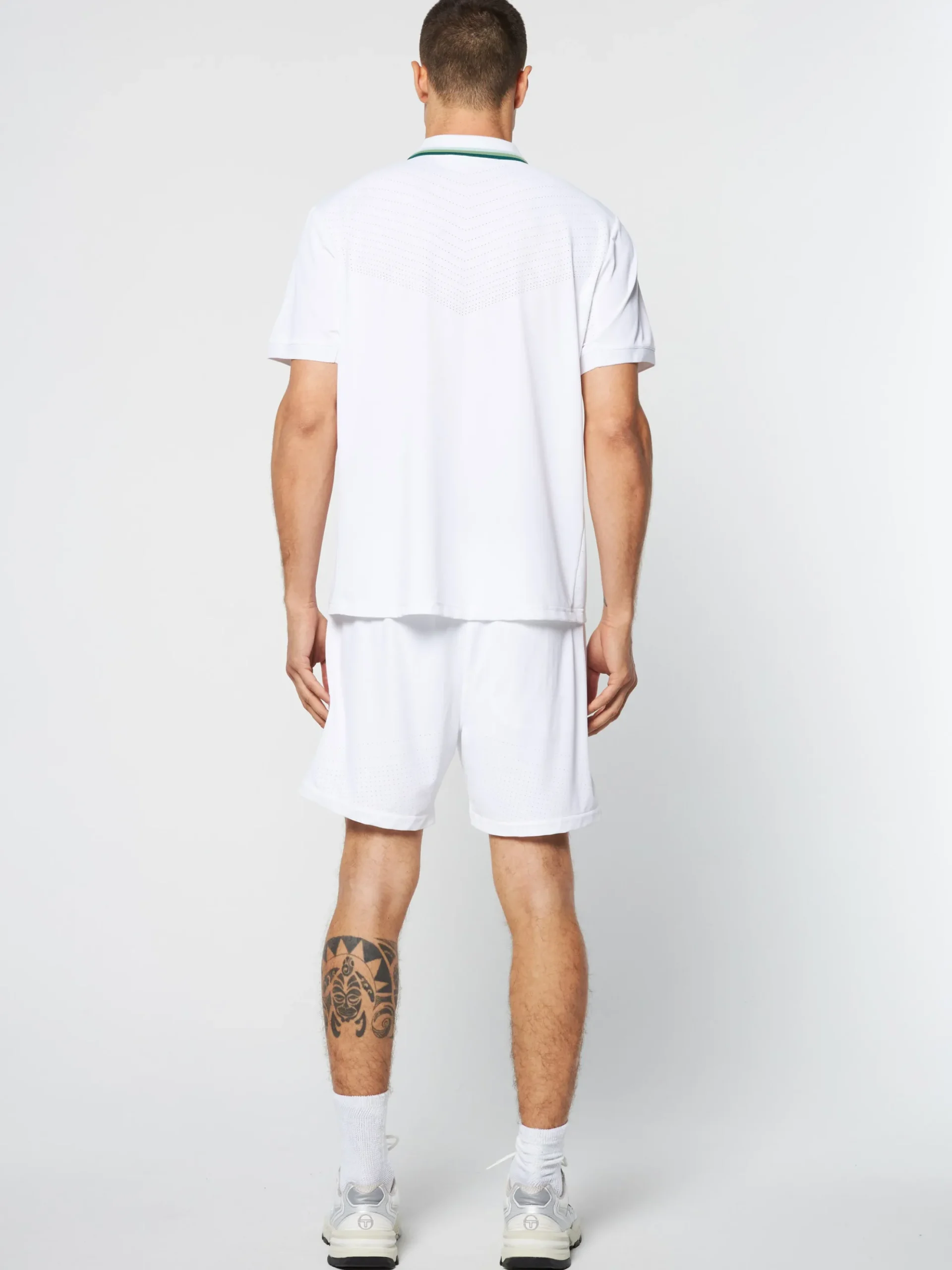 The Veloce Polo is made of moisture-wicking performance piqué with a subtle stretch and perforated vent panels to keep you cool and moving freely through any workout. Perfect for on and off-court wear, this lightweight and breathable polo is complete with tipping stripes at the collar and a Sergio Tacchini logo at the left chest.