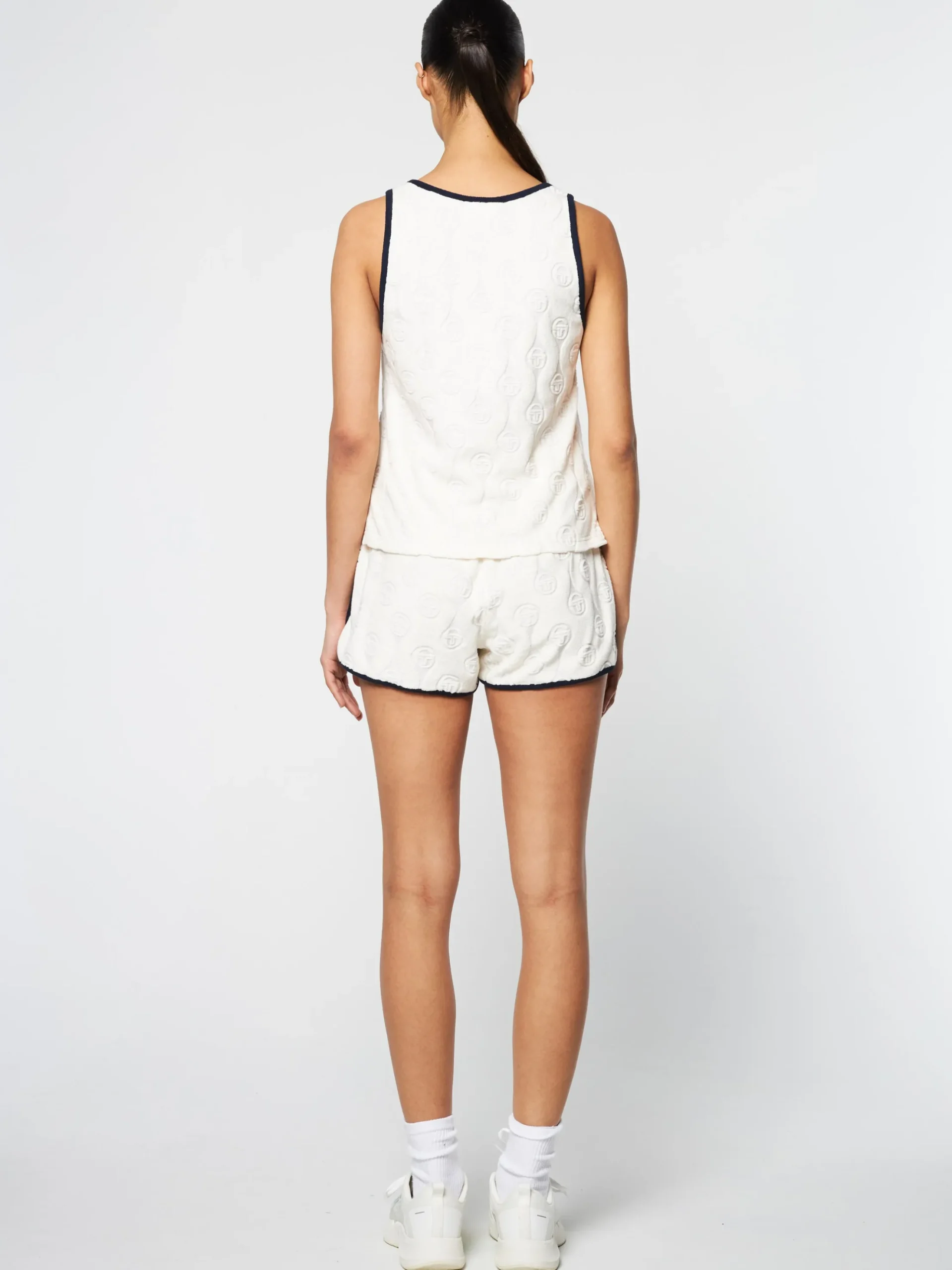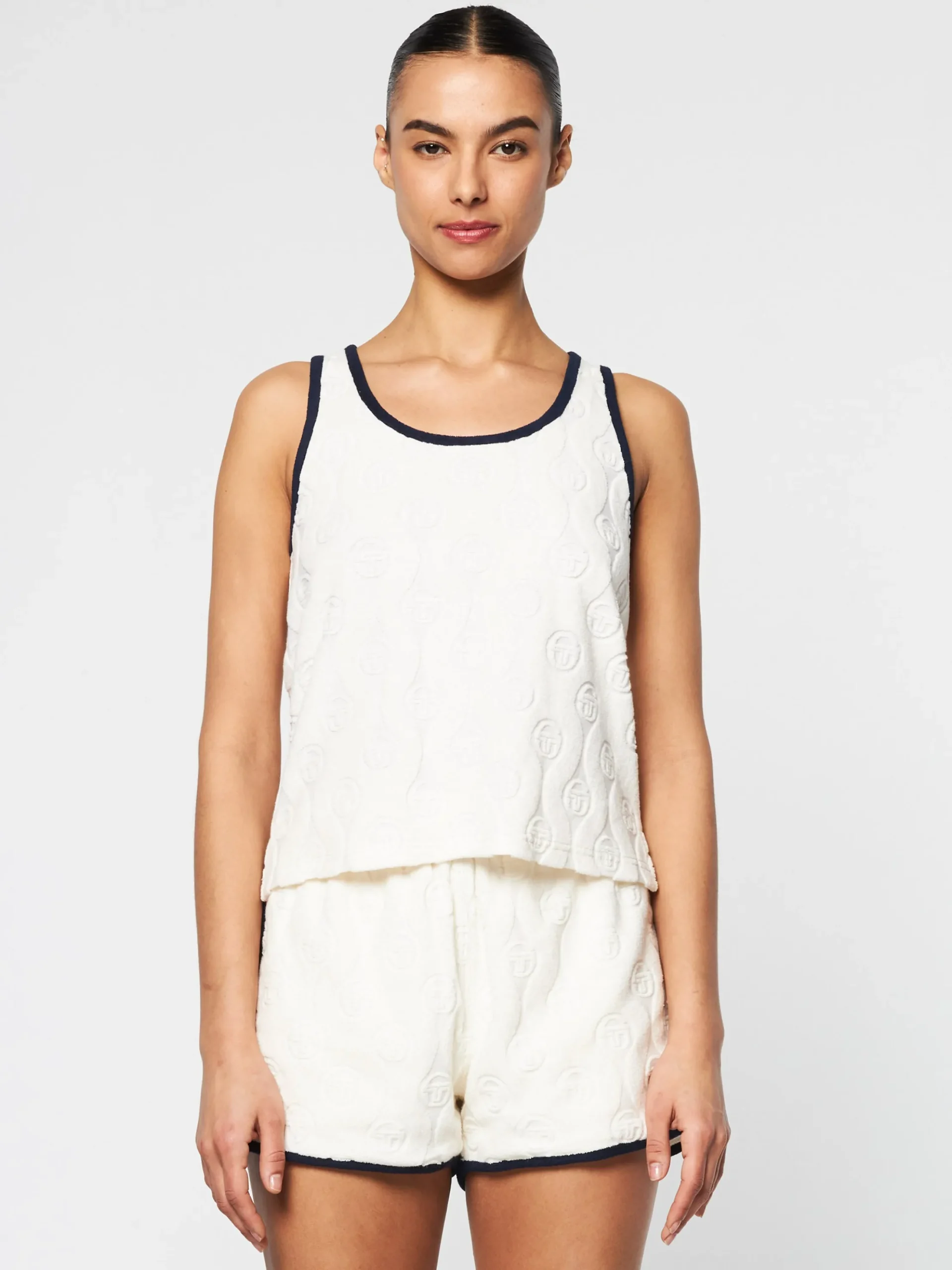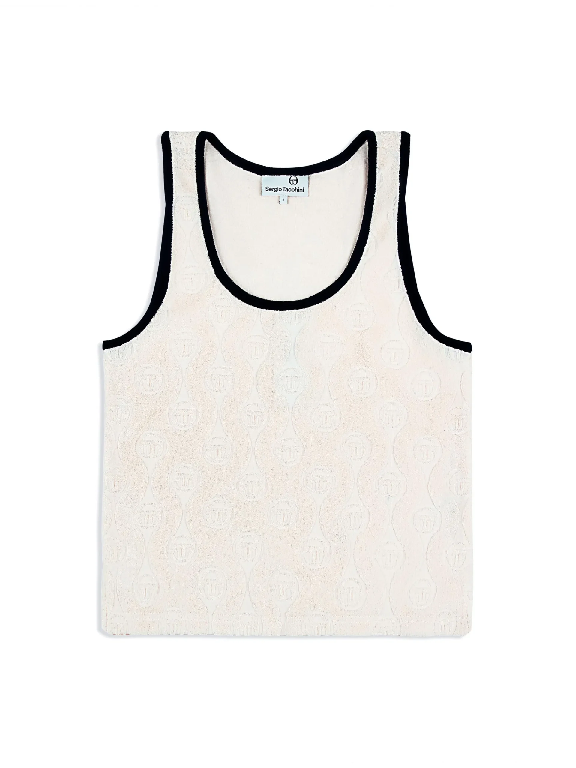 Crafted from incredibly soft and absorbent terry, our premium Zona Tank features an all-over debossed ‘ST’ monogram motif as a nod to vintage luxury resort wear. Topped with contrast binding accents at the scoop neckline and armholes, this elevated tank top is perfect for working out or lounging at home.